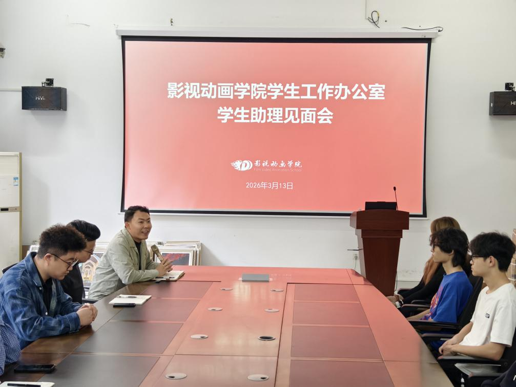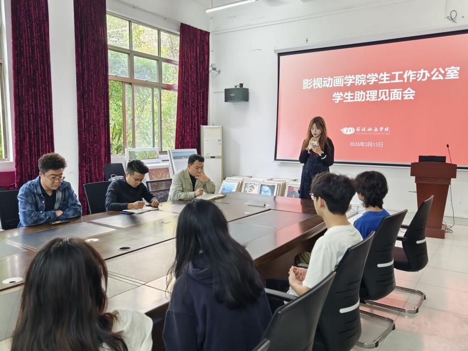为进一步落实立德树人根本任务,强化思想政治引领,提升学生助理队伍的服务意识与责任担当,明确新学期工作方向,2026年3月13日下午,影视动画学院学工办在东区综合楼101室召开学期初学生助理见面会。学工办全体老师及学生助理参加本次会议。
