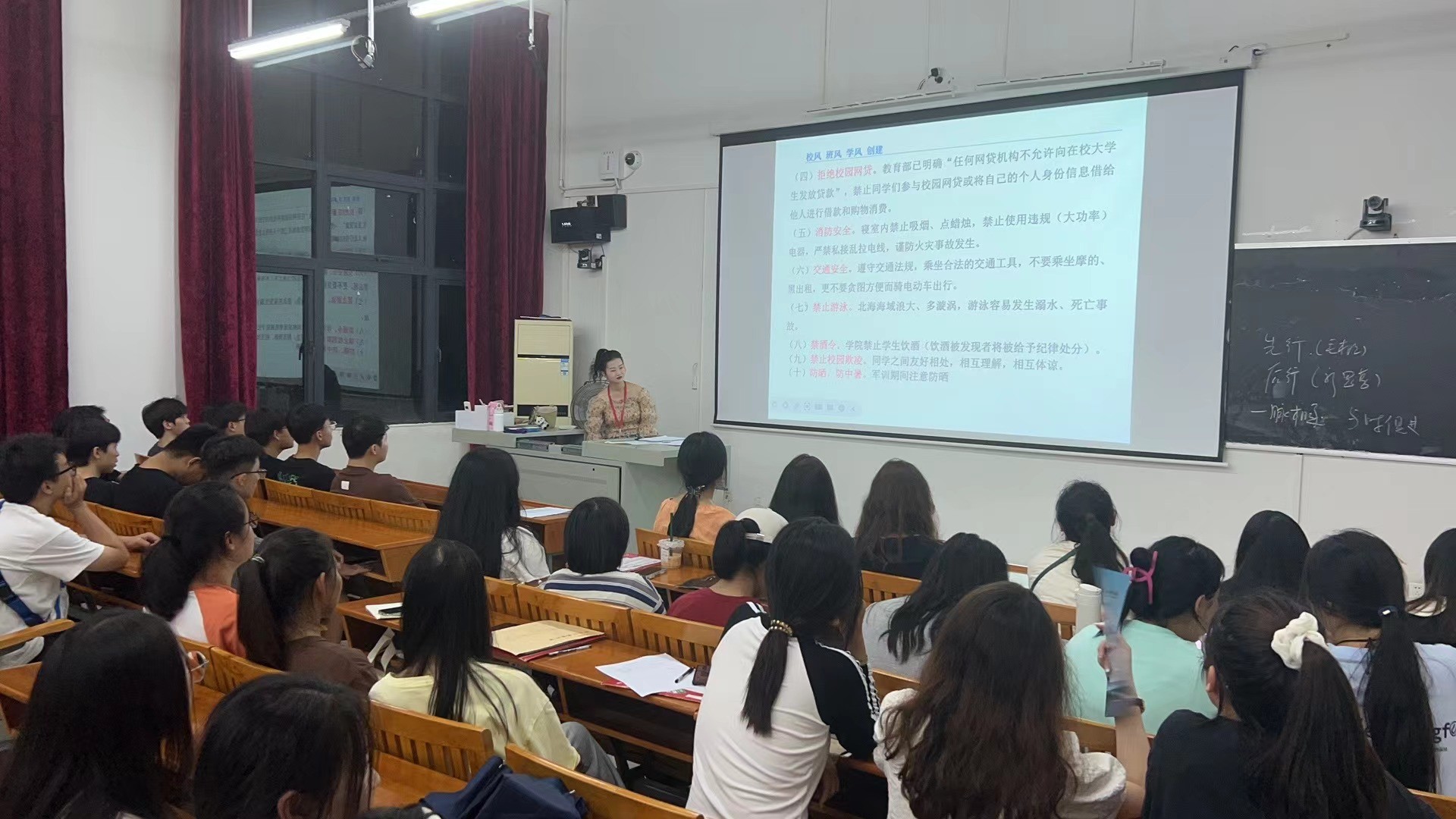 9月10日,美术学院新生辅导员为2023级各班新生举行“第一次班会”,在班会中,各班班级辅导员为新生全面地介绍了北海艺术设计学院,带领新生了解美术学院的教学课程、活动安排以及教学理念等。同学们对于未来的大学生活充满了憧憬,对于独立生活的困惑也向辅导员倾诉,美院各班新生辅导员耐心听取了同学们的心声,与新生进行了入学第一次交心谈话。班会上,辅导员们教导新生:要心系国家事,肩扛国家责。要度过健康积极的大学生活,担负起青年一辈肩上的责任,力求感受广阔的社会现实和伟大的时代进程,树立好“强国有我”价值导向。(许荣军 摄)