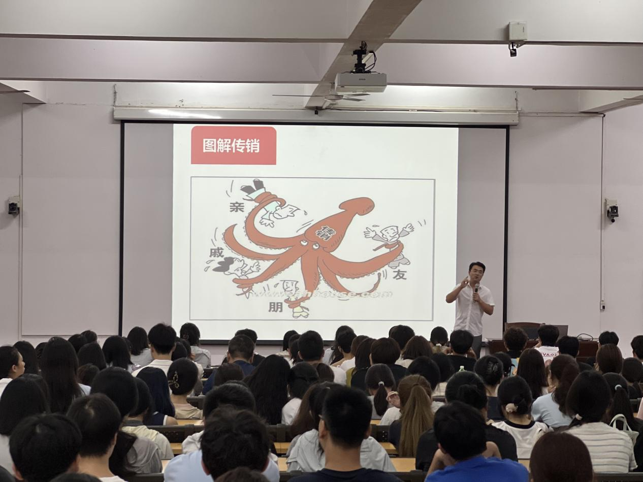 随后,韦亮宇老师围绕《学生手册》,就学生管理规定、评奖评优机制、违纪处理办法、缴费管理政策及学生资助体系等内容进行了系统解读,帮助新生明确在校期间的权利与义务。结合校园实际案例,他提醒同学们要自觉遵纪守法、珍惜学习机会、尊敬师长、树立良好品行,远离一切违法违纪行为。