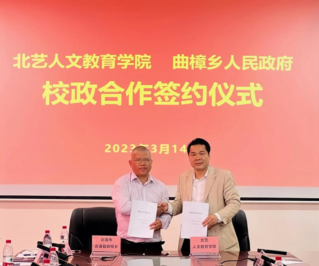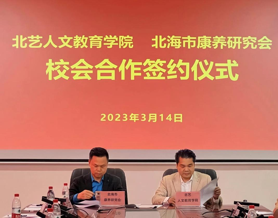 3月14日上午10:00,北海艺术设计学院政产学研用融合发展研讨会暨北艺人文教育学院与曲樟人民政府、北海市康养研究会校会合作签约仪式在北海艺术设计学院西校区图书馆五楼会议室隆重举行,学校董事长郑念贻,副校长陶立阳,副校长王斌,学校党委委员刘承初,学院党总支书记、院长熊秀峰,副院长李水亮等相关领导以及各二级部门主要负责人出席本次研讨会暨签约仪式。活动由党总支副书记邓欢主持。