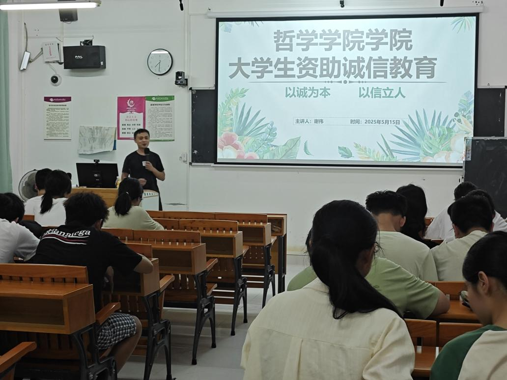 为进一步落实校园诚信教育,增强学生诚信意识,5月15日晚,哲学学院在觉悟楼402教室,召开以“学生资助伴你成长,教育强国奋斗有我”为主题的诚信教育大会暨奖学金学生座谈会。本次活动作为本学年“资助月”系列宣传活动的重要一环,为校园诚信文化建设与学风培育注入强劲动力。