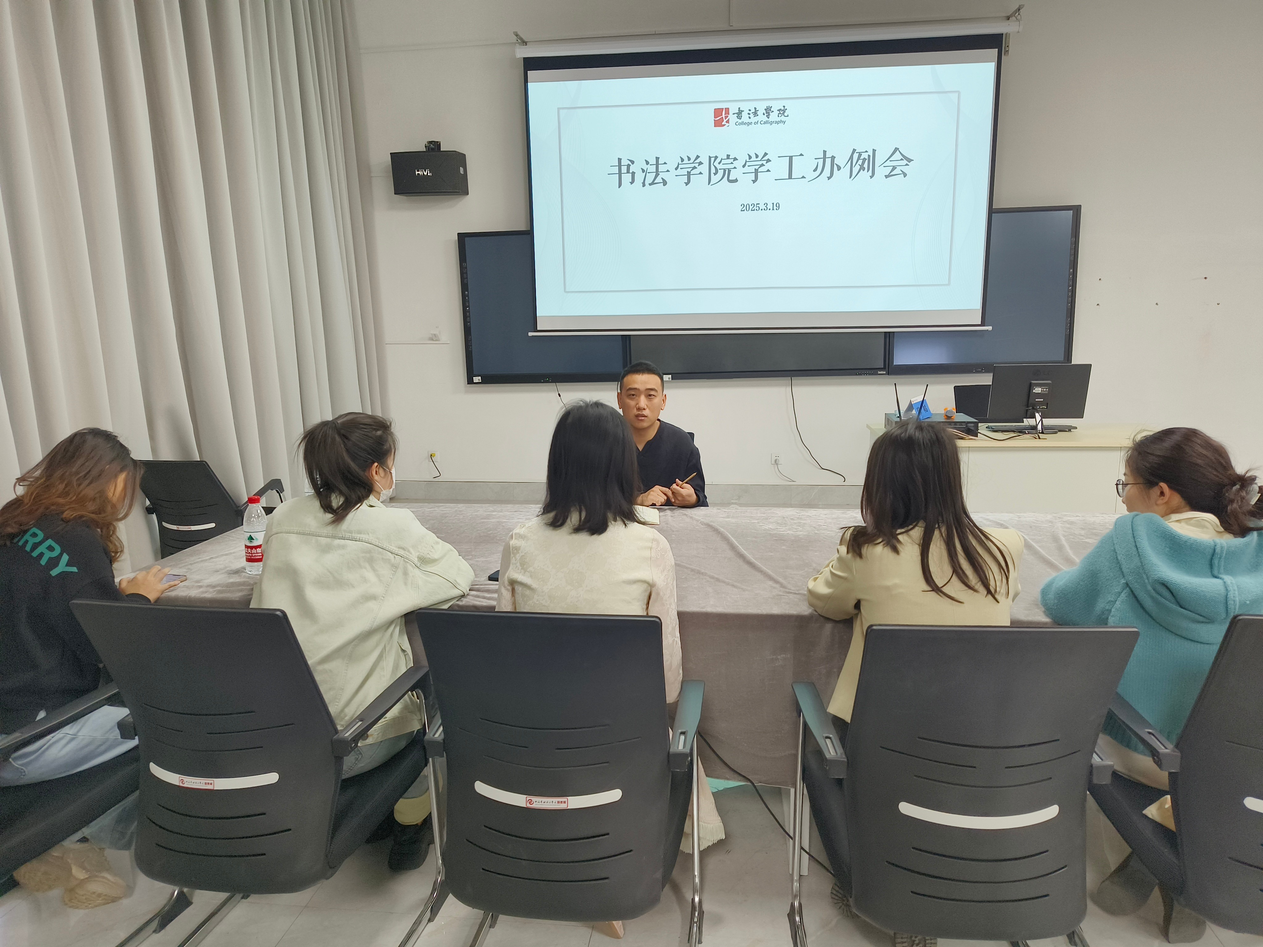 进一步统一思想、凝聚共识加强学生管理工作,确保校园环境和谐稳定及后续教育教学活动的顺利进行319午,书法学院学生工办于艺德楼召开三月学生工作例会。书法学院党支部书记喻广林、副书记左云飞、学工办主任李家琪及全体学工教师参加会议。会议由李家琪主持。