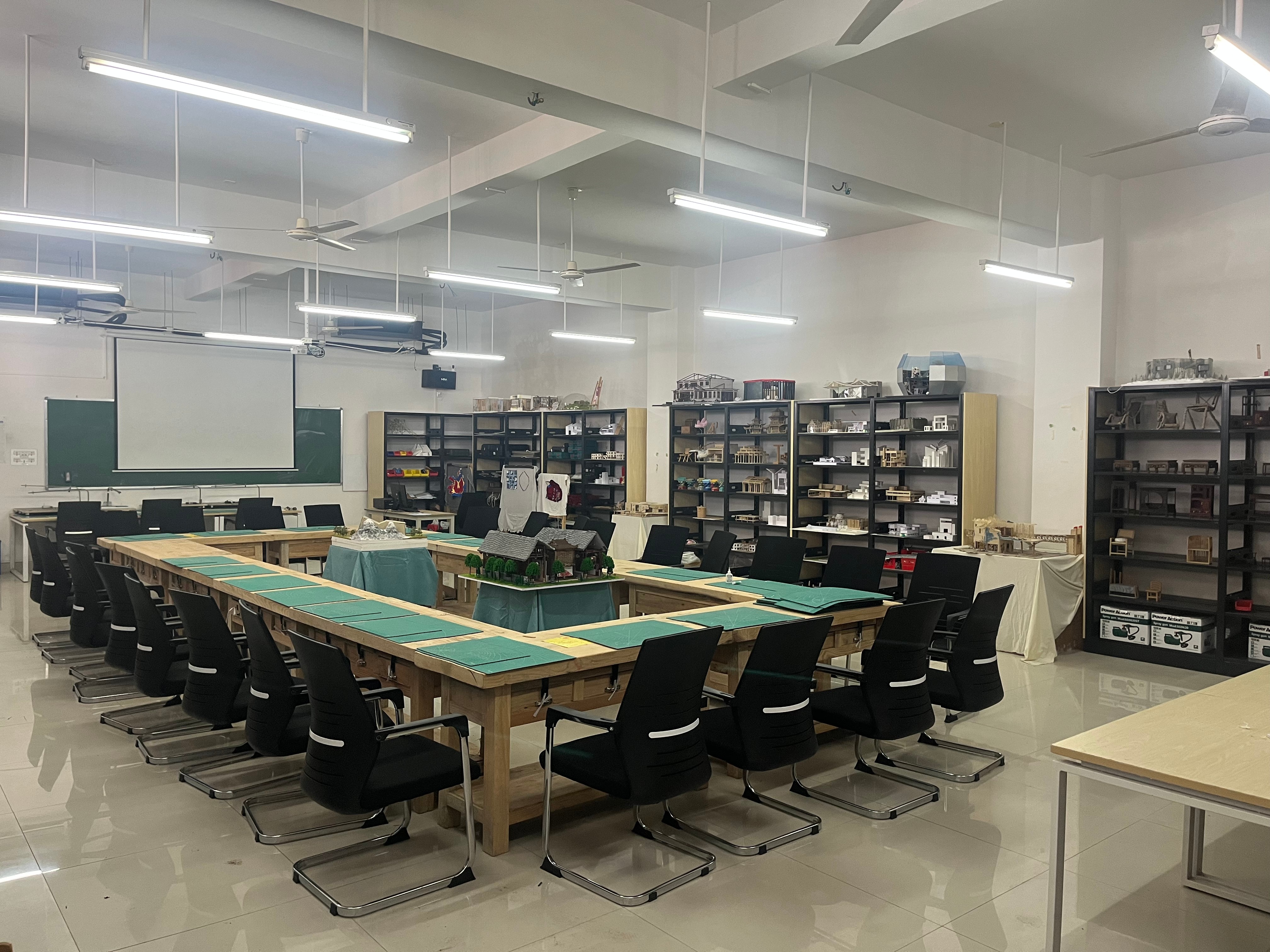 该实验室是环境设计专业实验教学的主要场所,本实验室主要用于承担本专业的实验项目有展示空间模型制作、陈设设计模型制作、家具模型制作、景观模型制作等。