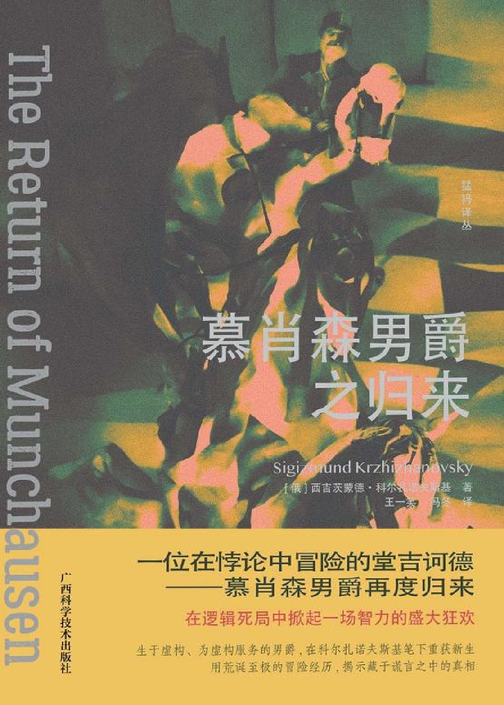 本书为科尔扎诺夫斯基的中篇科幻小说,在其笔下,著名的德国幻想故事《吹牛大王历险记》中的主人公慕肖森男爵穿越时空,从“一个巨大的世纪钟面”跌落至二十世纪二十年代,在欧洲一战后的动荡中重新发现想象力所在。科尔扎诺夫斯基借鉴男爵的事迹及康德等哲人的学说,创造出一种混合了博学、梦幻和讽刺的阅读奇观。