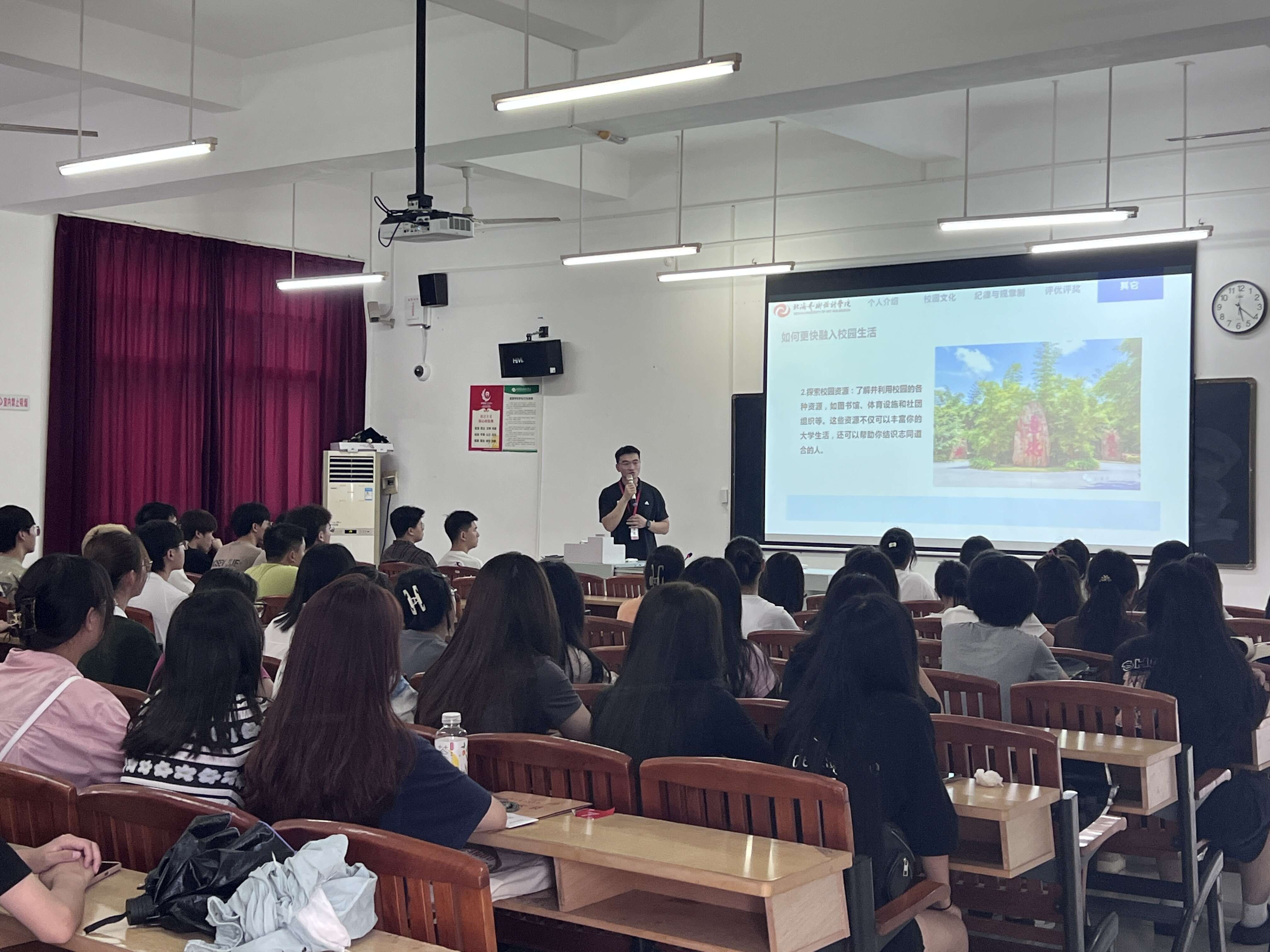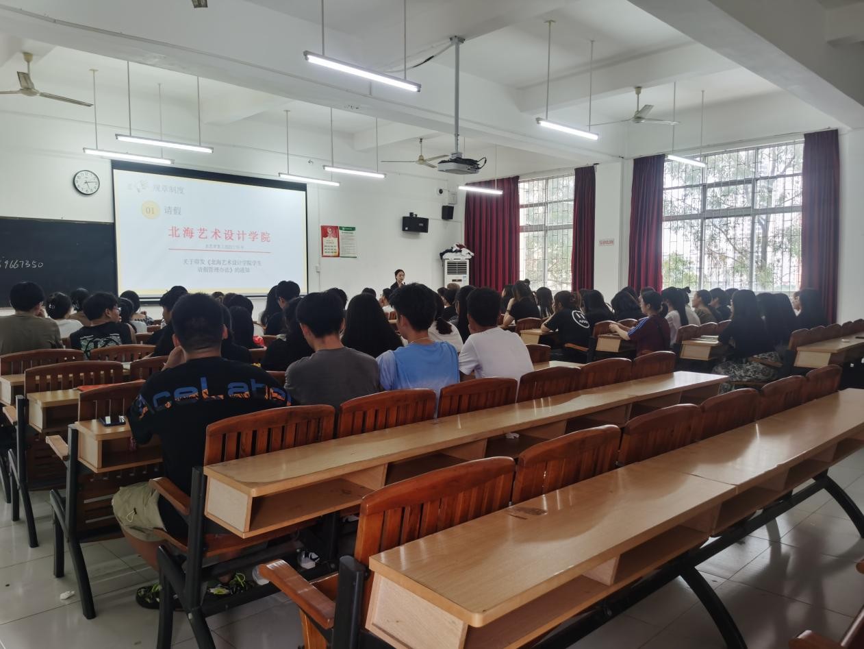 此次班会气氛活跃,班级辅导员和新生的第一次互动也恰到好处。让新生更好地了解了北海艺术设计学院的校园文化、班风学风,增强了安全意识,希望同学们也能够快速融入校园生活的方法,积极投入到学习和校园生活中。(陈淑文/摄)