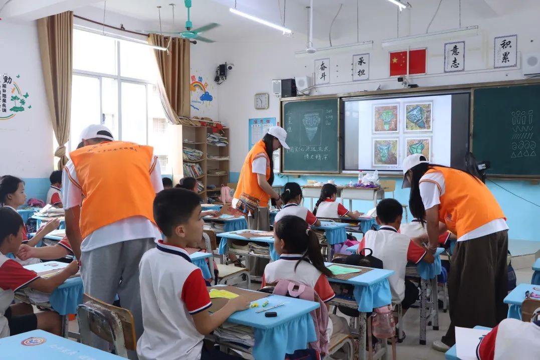 美术课上,通过简单的课程讲解,践行团的成员们为同学们做了示范,使他们在绘画的过程中更能感受到美术课程的独特魅力。