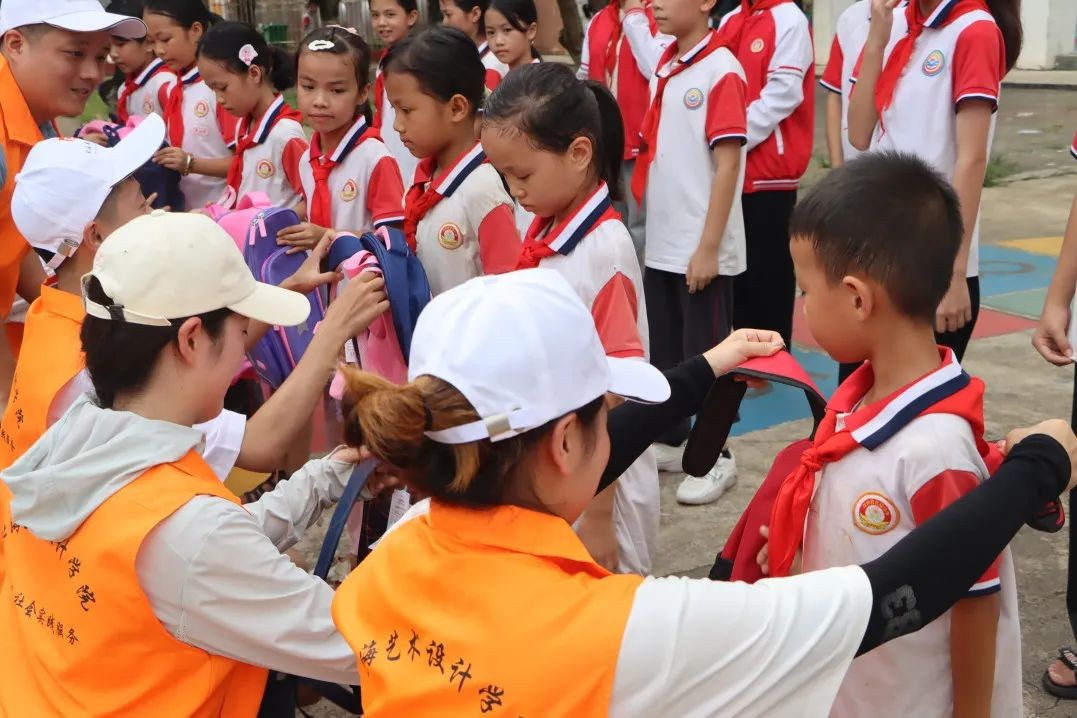 接着,践行团的成员们为小朋友们送上学习物品,并和孩子们深入交流,询问他们的日常生活和学习基本情况,以及当地的民族文化。