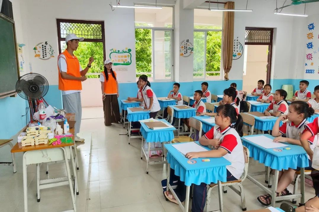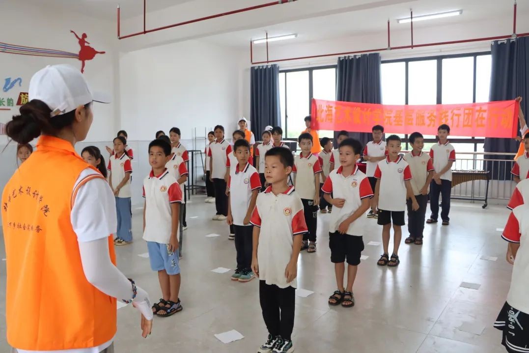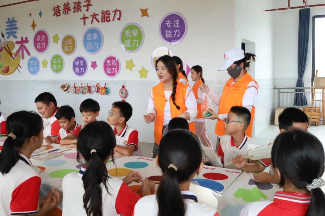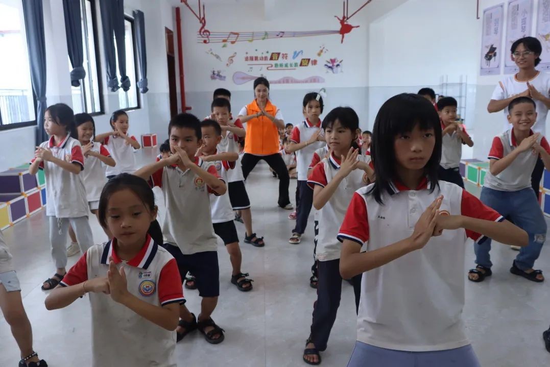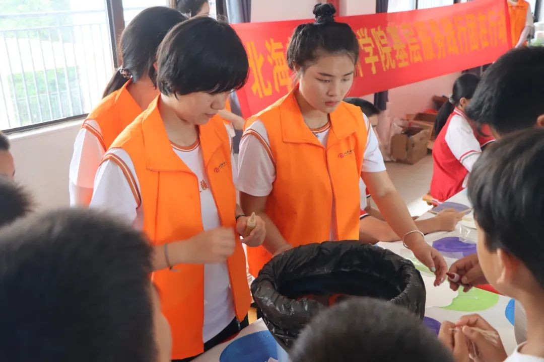 6月17日-19日下午,基层服务践行团在崇左市下冻镇北耀完全小学开展了口才课、手工课、舞蹈课、美术课、音乐课等丰富多彩的课程,同学们将自己所学的专业知识技能教授给北耀完全小学的孩子们,为边陲小学的孩子们带去别具一格的艺术课堂。