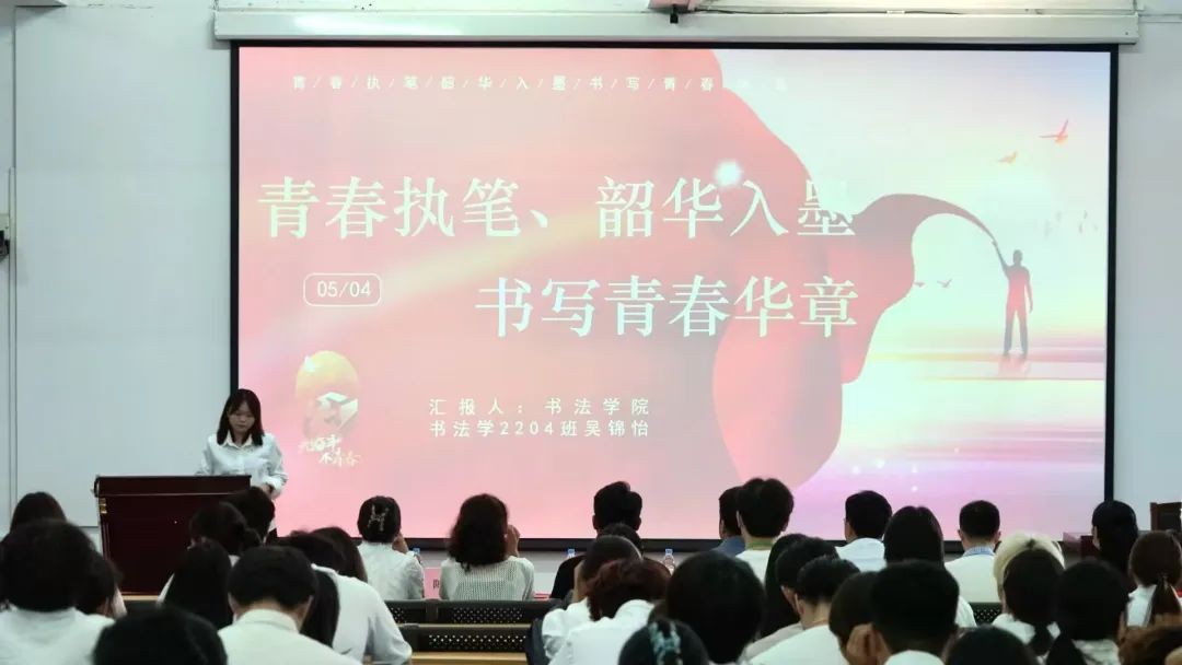 在本次活动中,文学院李敏、动画与传媒学院刘冰倩、哲学学院徐金秋、书法学院吴锦怡四位优秀学子代表,分别从创新创业、志愿服务、学术研究等领域分享个人故事,以亲身经历诠释五四精神,展现新时代青年的使命担当,为在场学子树立奋斗榜样 。