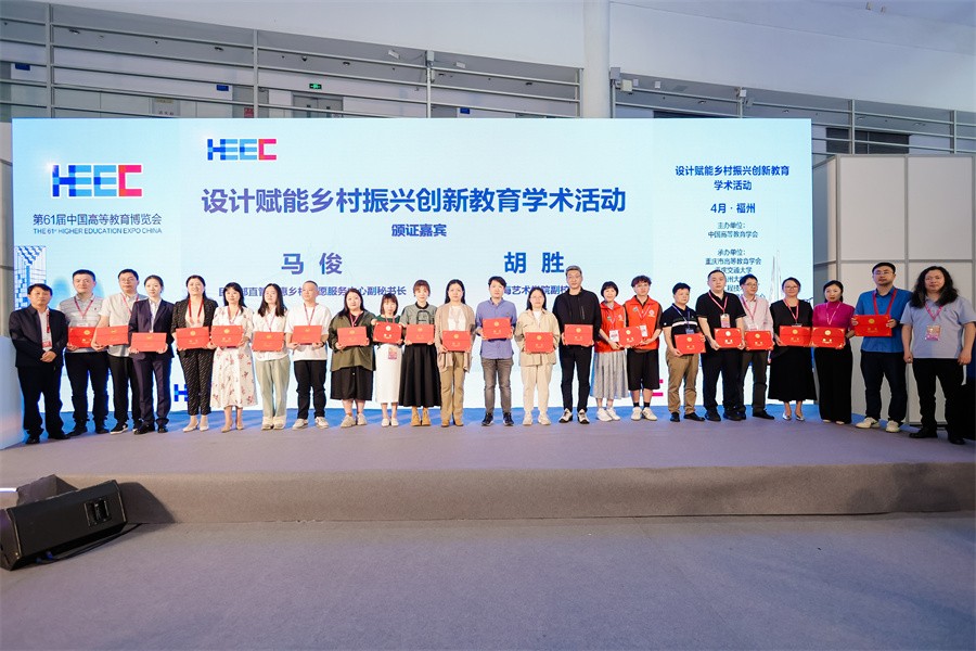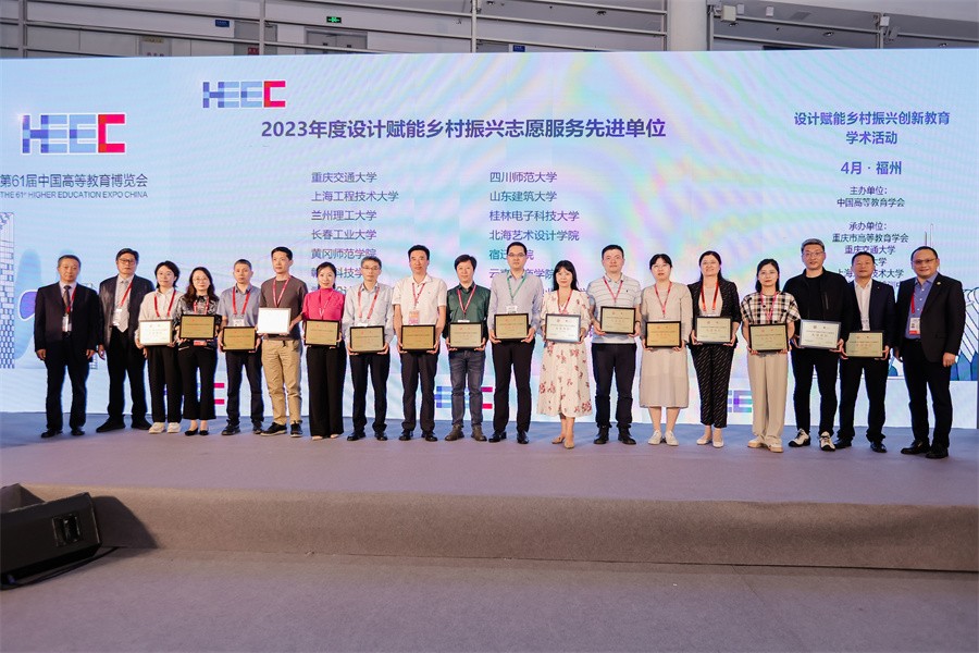 据悉,“高博会”为期3天,以“职普融通·产教融合·科教融汇”为主题,共推出展览展示和学术活动两大主体部分,参会院校1500余所,线下参会观众10余万人次。设计赋能乡村振兴创新教育学术活动是本届“高博会”的重要组成部分,活动以“赋能乡村振兴共富美丽中国”为主题,聚焦乡村文化、教育创新、人才培养、赛教融合等热点话题,来自全国各地的专家、学者围绕设计赋能乡村振兴相关领域的知识前沿与创新实践,进行了全方位、多维度、深层次的交流。开幕式同步举办了未来设计师大赛组委会发起的“我为乡村做设计”表彰活动,组委会与民政部直管智惠乡村志愿服务中心评选出的“2023年全国高校设计赋能乡村振兴志愿服务先进单位”及“全国高校设计赋能乡村振兴优秀案例”受到表彰,学校常务副校长胡胜作为受邀嘉宾为优秀案例代表颁发证书。