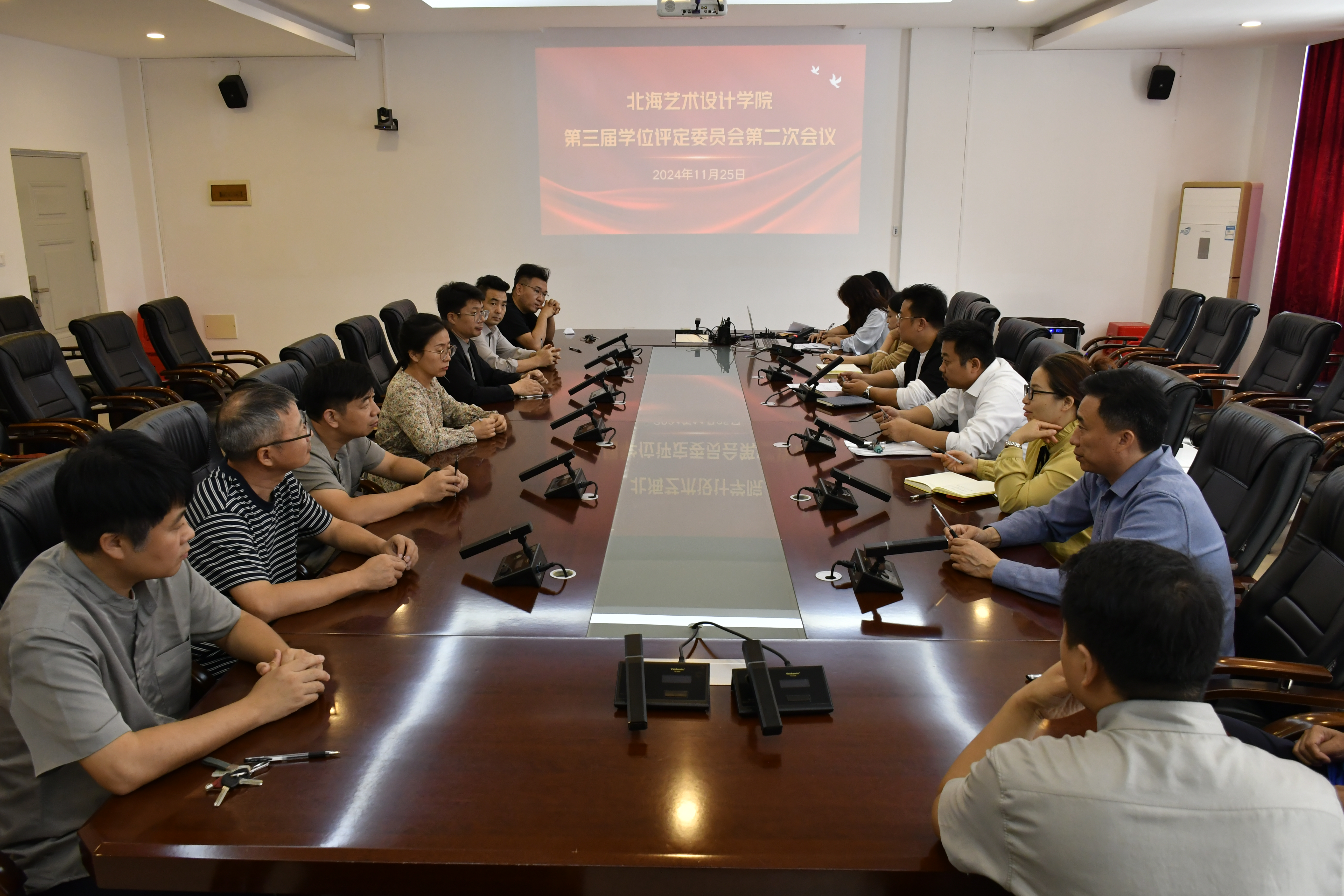 2024年11月25日上午,第三届学位评定委员会第二次会议在行政楼212召开。校学位委员会委员共15人出席会议,教务处相关负责人参加会议。会议由陶立阳副主席主持。