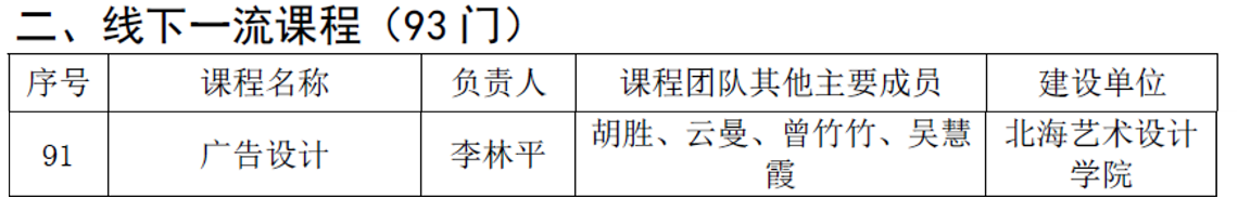 近日,根据《自治区教育厅关于公布第三批自治区级一流本科课程名单的通知》(桂教高教〔2022〕30号),我校李林平负责的 《广告设计》课程认定为自治区级线下一流本科课程、陶立阳负责的《动画项目创作》课程认定为自治区级社会实践一流本科课程。