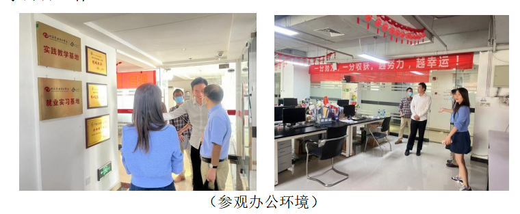 走访了海城区千朵培训有限公司、北海富安居设计创意实践基地、远见传媒、北海365、海城区第一幼儿园等企事业单位。期间,各单位负责人带领参观了办公环境、实习生工作情况并汇报了合作情况、课程共建、以往实习生的工作痕迹及合作单位对实习生的培训等情况。