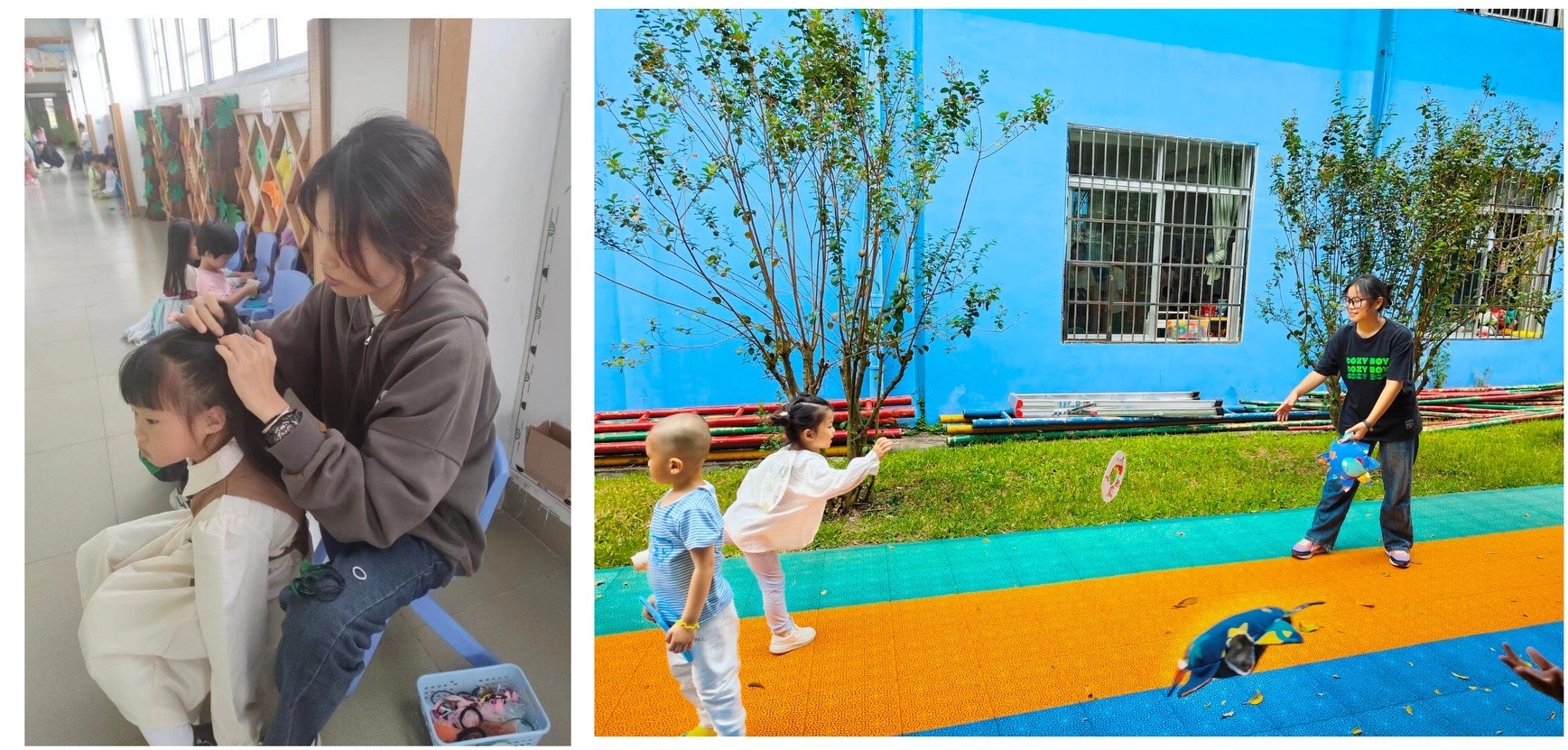 教育实践期间,同学们严格遵守学校和幼儿园的各项规章制度制度,按时到岗开展工作。2021级和2022级的见习生们积极主动参与幼儿园一日生活的各个环节,在教师的带领下组织早操、管理午睡及组织离园等活动,认真学习一线教师的活动组织方式和问题处理机制;能主动参与幼儿园班级环境创设,积极主动配合主班教师组织幼儿活动,配合保育老师做好清洁工作;能在教师的指导下尝试独立授课,组织幼儿进行游戏等等;在见习工作中充分发挥自己的专业能力,保质保量完成各项工作任务。2023级的同学们认真开展专业调查工作,了解和熟悉幼儿园的工作及运行机制 ,从实践中进一步端正专业意识,树立积极的求学心态,不断提升自身的专业素养。