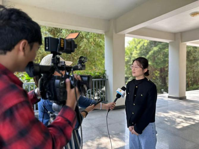 讲座结束后,北海电视台对我院师生进行了采访,人文教育学院文学理论任课教师文莹表示,非常感谢张燕玲主席能到我校为我院师生做讲座,张老师个人知识的深度、专业的精度和讲述的从容使人深受启发,张老师的讲述中既有对当下文学格局的构建、文学批评有效性的见解,又有对从事文艺创作和文艺批评的年轻一代的指导,同时还为我校艺术评论平台的建构提出了建议。希望年轻一代能够传承并学习前辈们的师者风范和时代担当精神。2022级汉语言文学专业学生吕澳表示,作为学生,在之后的学习中她会更加主动地接触经典名著,进行文学创作,积极发掘本土文化,传承文脉,为国家文艺建设做出一点贡献。(梁镨文 练馨怡 谢佩玲/摄)