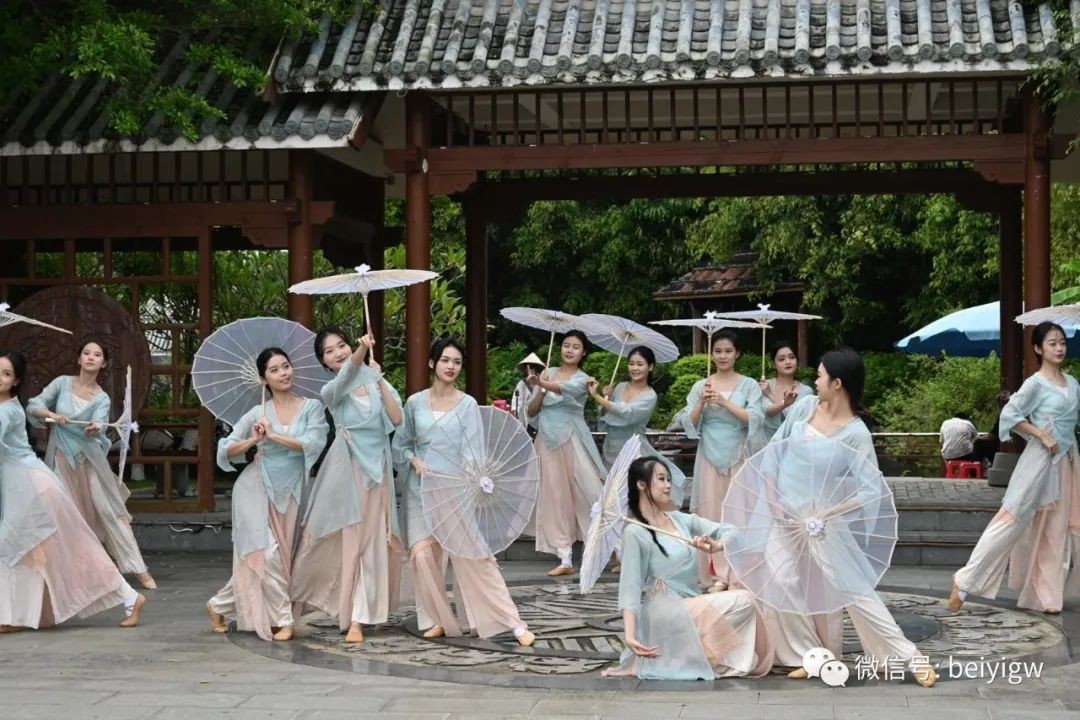 一曲民族音乐 舒缓而又热情 色彩鲜艳的民族服饰 洋溢着欢腾愉悦 《欢迎朋友四方来》 手挽手,友谊之花遍地开 八桂儿女共聚一堂,欢度国庆! 朦胧春雨,烟幕袅袅 是希望,是生长,亦是生命的律动 舞蹈表演的学生们 手执雨伞,舞姿轻盈 《雨涧春行图》缓缓绘出 素雅高洁,清幽宁静 我国传统茶道间蕴含着 天人合一的哲学观念 以茶看人,浓厚醇香 一舞《佳茗行》 品百味人生 山有木兮木有枝,君悦君兮君不知 谦谦君子,意气风发 纸扇轻摇,俊逸潇洒 《纸扇书生》深埋着殷殷爱国情 《唐印》舞蹈使人梦回大唐 既有女性的娇柔秀美 又有盛唐时期的豪迈奔放 这就是华夏自信! 说到“淡妆浓抹” 人们总会自然联想到 苏轼的“欲把西湖比西子” 蒹葭之岸,景色清幽 西湖之美,人亦如斯 《西子湖·淡妆》,尽显清雅 灰瓦青砖雅舍 小桥水清幽 浅浅清欢,步步生姿 《踮步桥水清悠悠》 清雅古典舞,等你来欣赏! 桂林山水,秀美天下 明月高悬天际,山静蝉鸣 一片祥和之景 舞蹈《象山水月》,唯美非常 在国庆佳期,北海艺术设计学院舞蹈表演的学生用专业为祖国献礼,在实践中增强家国情怀,提升专业能力,实现学有所用,服务地方,服务人民的学习宗旨。 本文转载自北海艺术设计学院微信公众号,原文链接:https://mp.weixin.qq.com/s/xlksl5pgovHmNYRXV4W9xw
