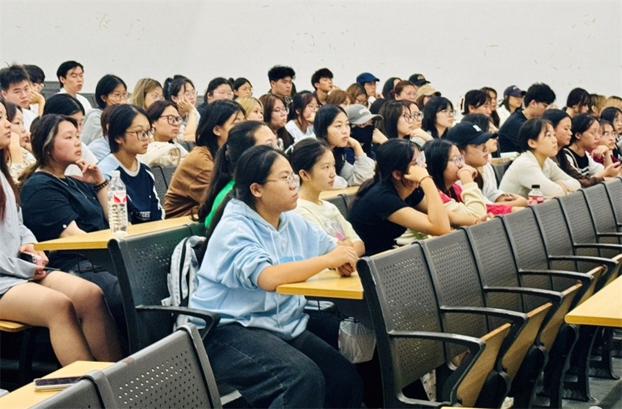 会上还播放了往届优秀毕业生的发言视频,旨在帮助新生更好地融入大学生活,通过优秀毕业生的经验分享,引导新同学找准目标、确定发展方向。同时激发同学们的热情与动力,营造了积极向上的学习氛围,增强了学生之间的凝聚力。视频中五位学长学姐的分享有效减少了新生适应期的迷茫与困惑,引导他们进行职业规划,这对新生建立专业自信心具有重要意义。