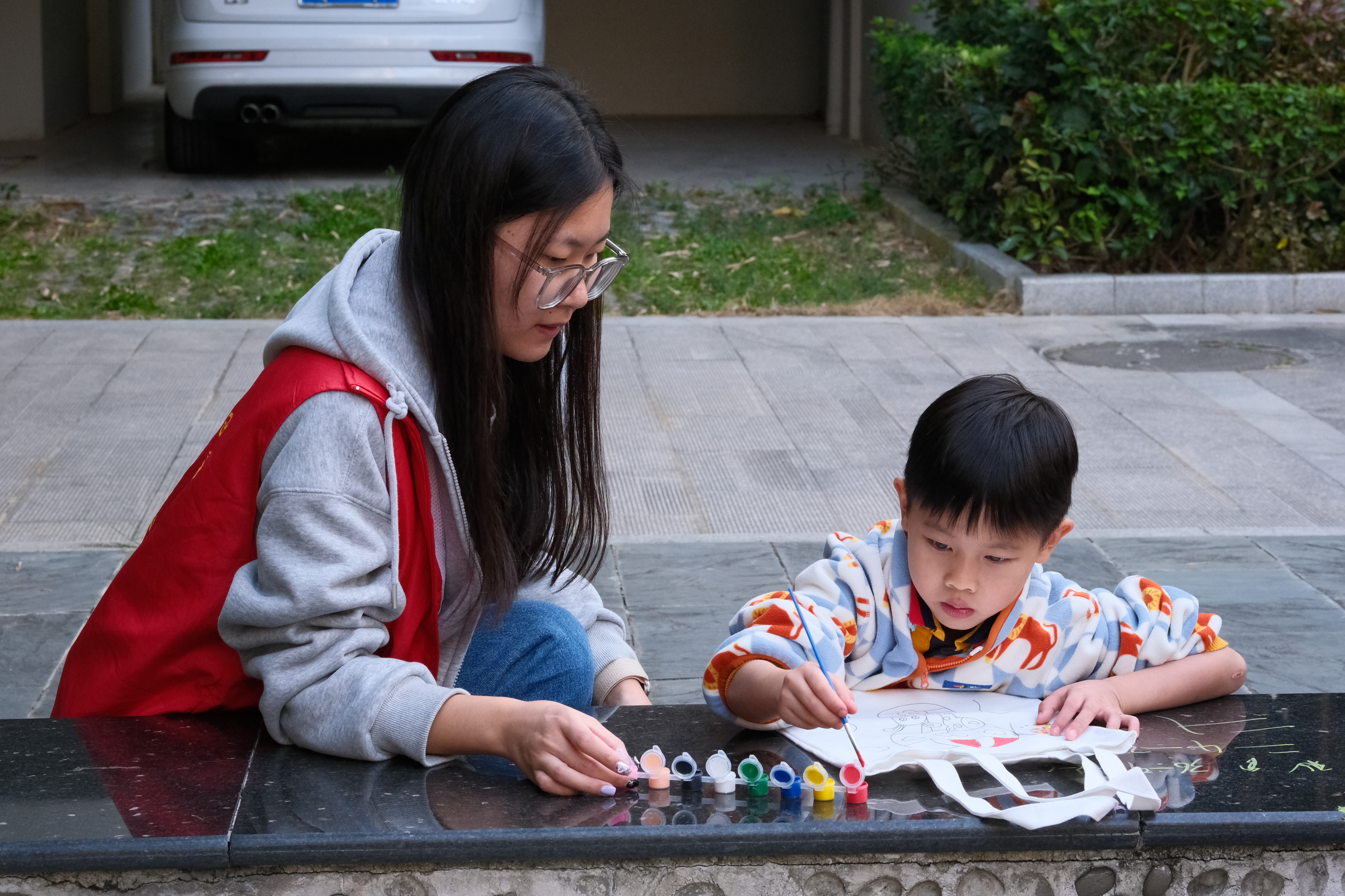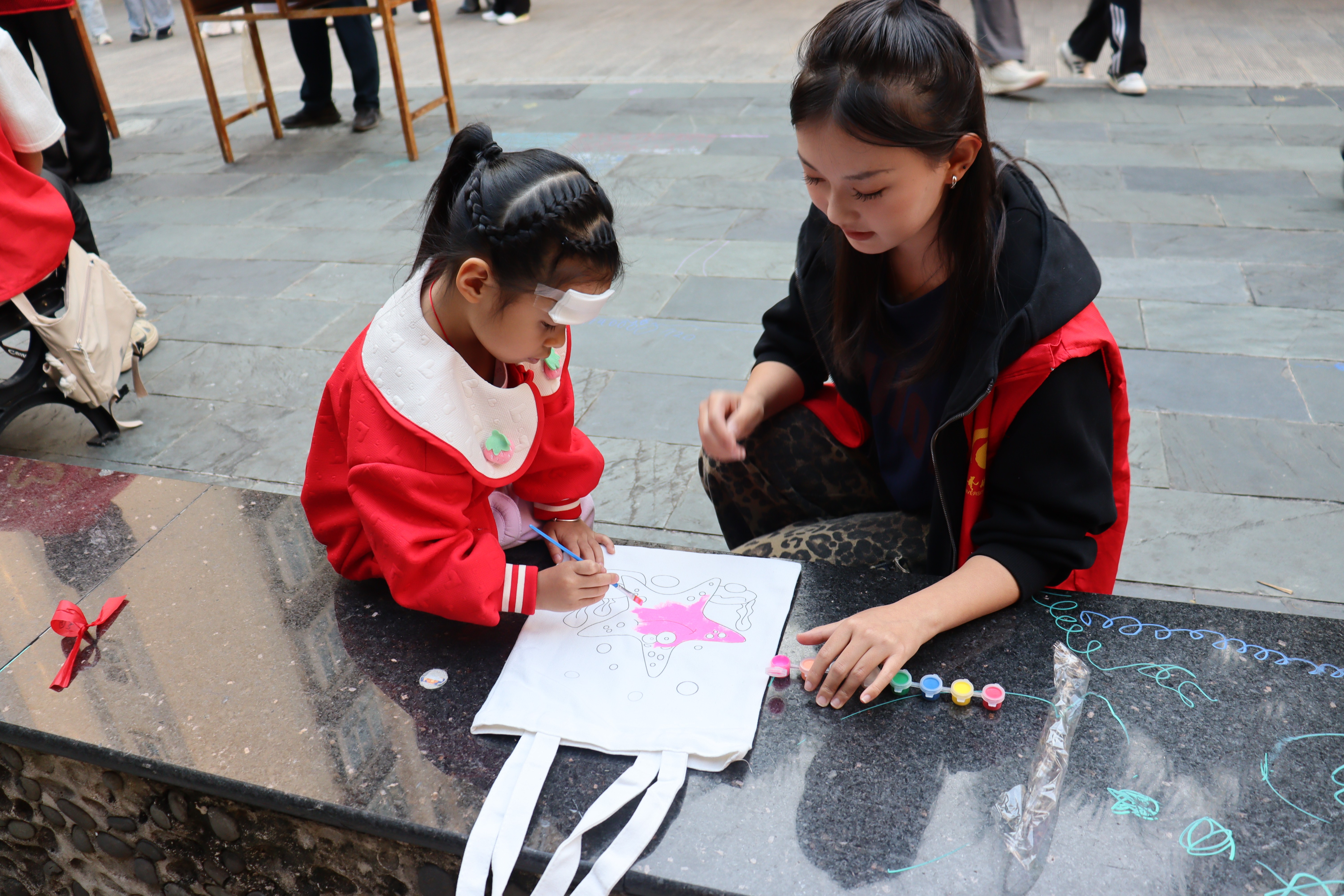 现场我们还为大家准备空白环保袋和涂色颜料。小朋友们发挥想象力和创造力,亲手绘制独一无二的环保袋。在传递绿色生活理念的同时,享受艺术创作的乐趣。