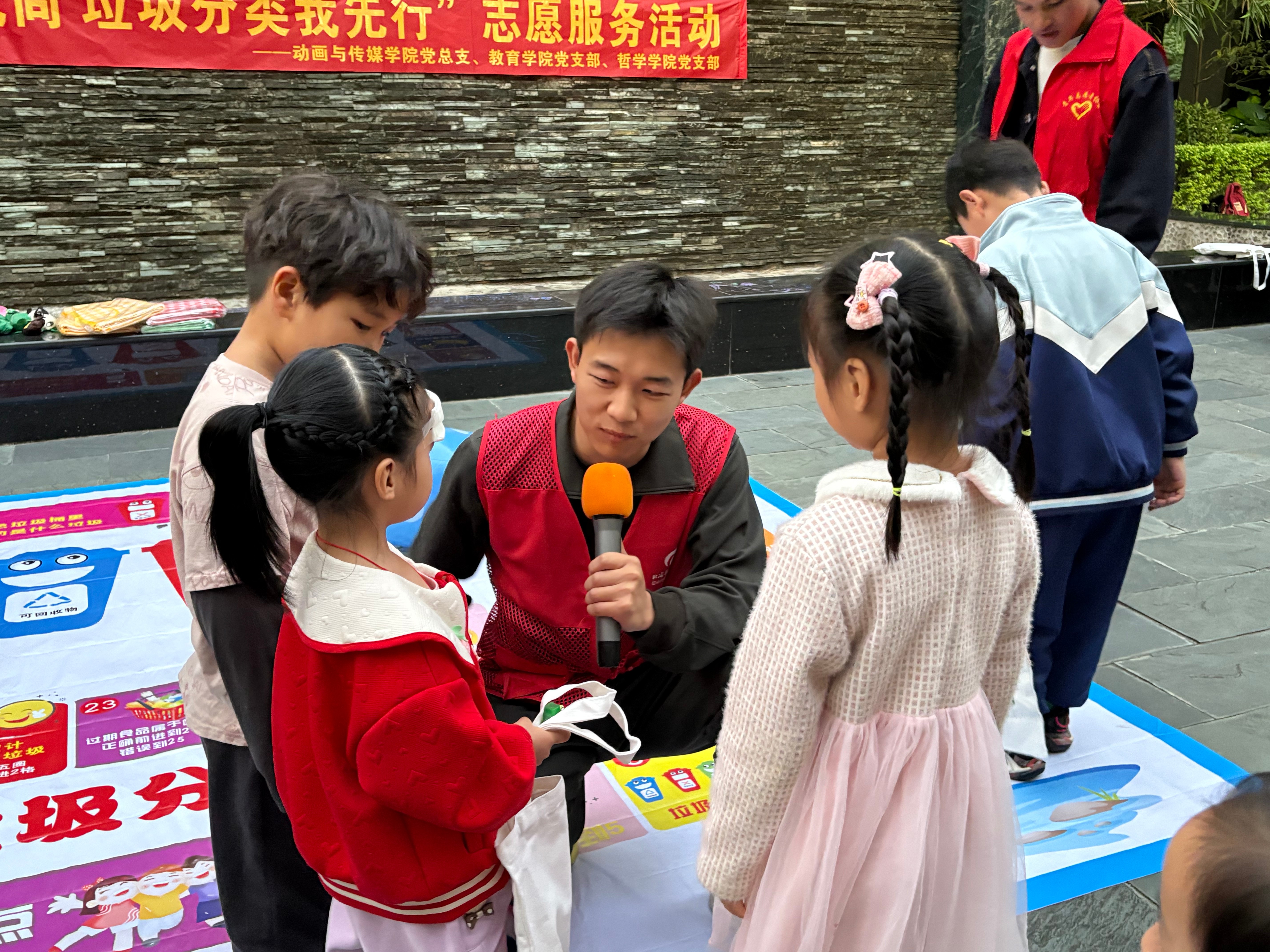 为进一步倡导垃圾分类理念,营造人人皆知、广泛参与的环保氛围,增加橄榄苑社区群众对生活垃圾分类的知晓度、认同度、参与度。2024年11月29日下午,教育学院党支部、动画与传媒学院党总支以及哲学学院党支部协同合作在橄榄苑小区举办了“党员引领新风尚 垃圾分类我先行”志愿服务活动。