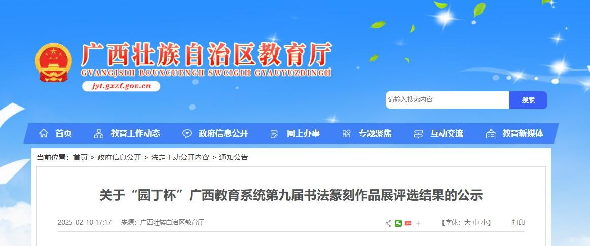 喜报!书法学院师生在“园丁杯”广西教育系统第九届书法篆刻作品展中荣获佳绩