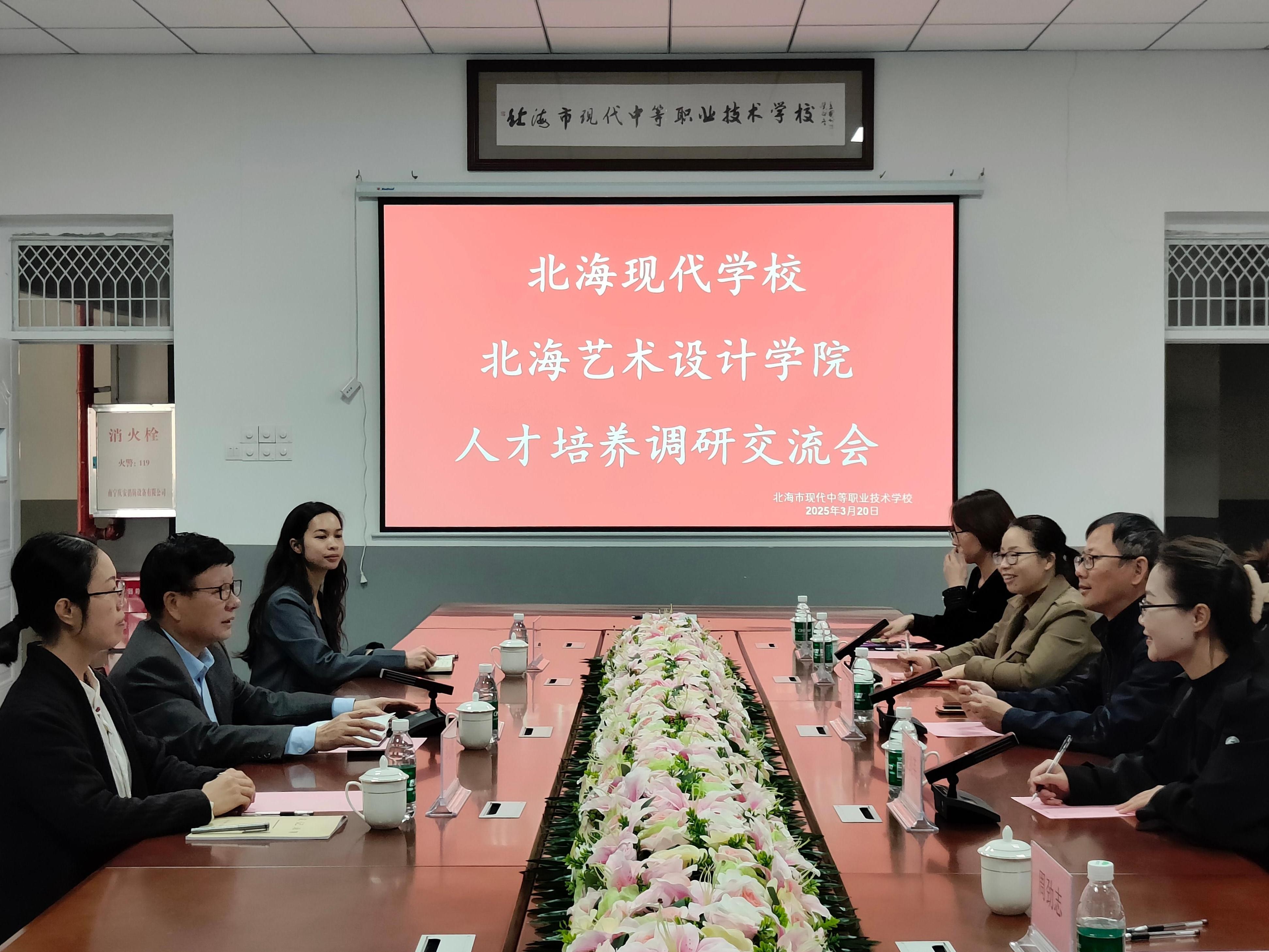 3月20日上午,北海艺术设计学院王斌总督学率教育学院领导班子一行北海现代中等职业技术学校开展人才培养专题调研暨访企拓岗活动。双方围绕人才引进、共建就业实习基地、推进人才共育等校际合作议题展开深入探讨,并就未来合作方向达成多项共识。