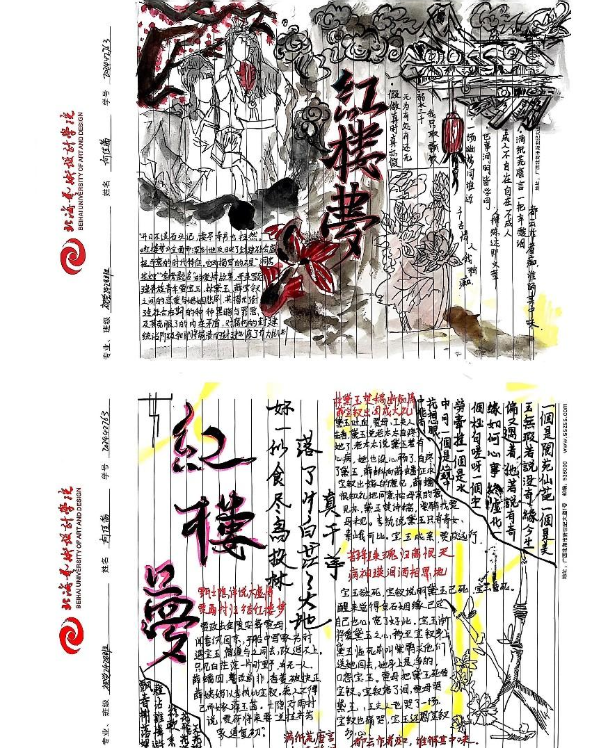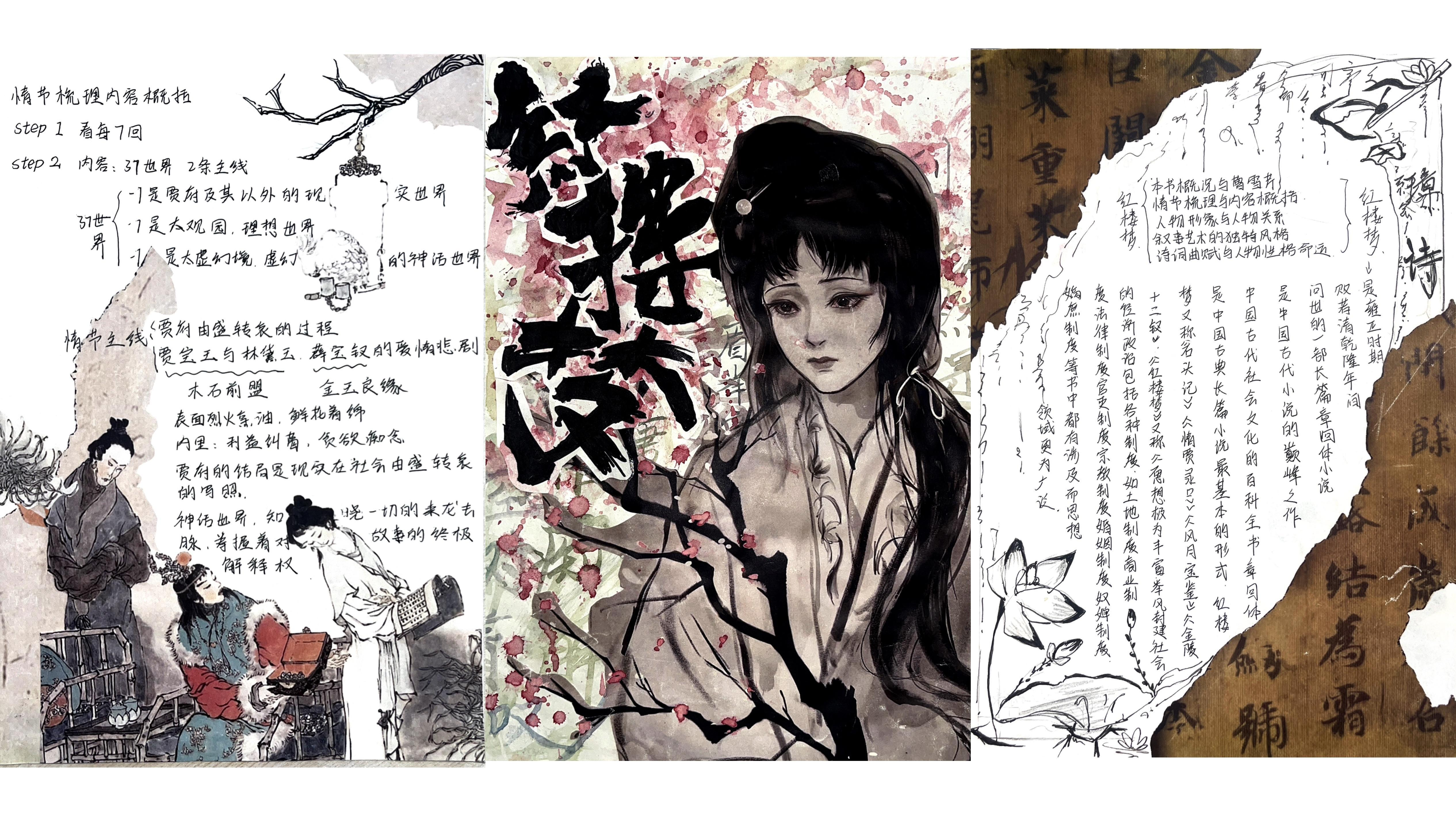本次大赛已构建起“全员参与、全程用心、全面展示”的特色育人模式,不仅融入文学院课程体系之中,更是传承中华优秀传统文化的重要载体。大赛将艺术思维与创新意识融入经典解读,实现跨学科融合创新。文学院以四大名著读书笔记大赛为抓手,引导学生深入研读经典,传承中华优秀传统文化,形成独立思考的学术品格,培养具有深厚人文底蕴的人才。以下是部分优秀作品展示: