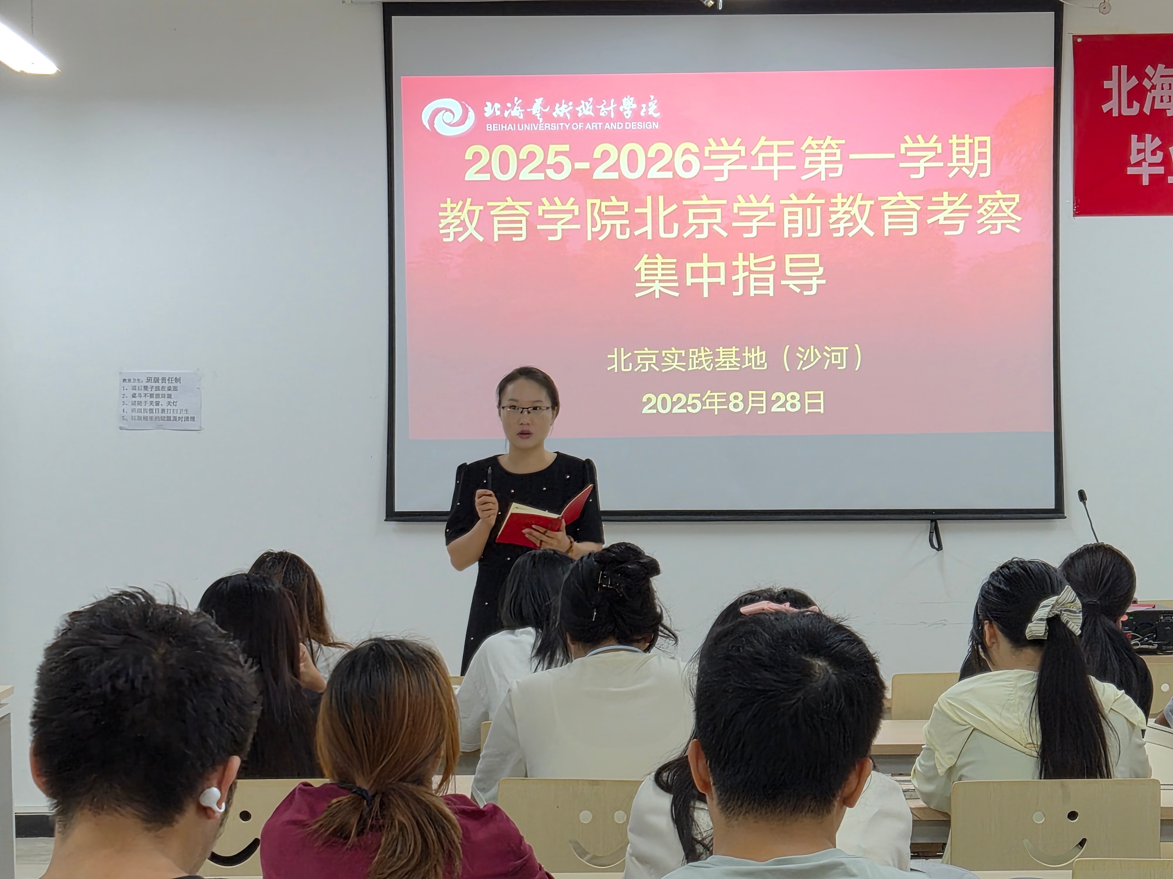 为深化理论与实践结合,提升学前教育专业学生的实践能力与职业认知,2025829日,教育学院2022级学前教育专业全体学生在教育学院教学副院长蒙剑英、北京实践基地副主任严腾、班主任雷蕊带领下,前往北京市昌平区巩华北科幼儿园、北科婴幼学苑开展《北京学前教育考察》课程实践活动。