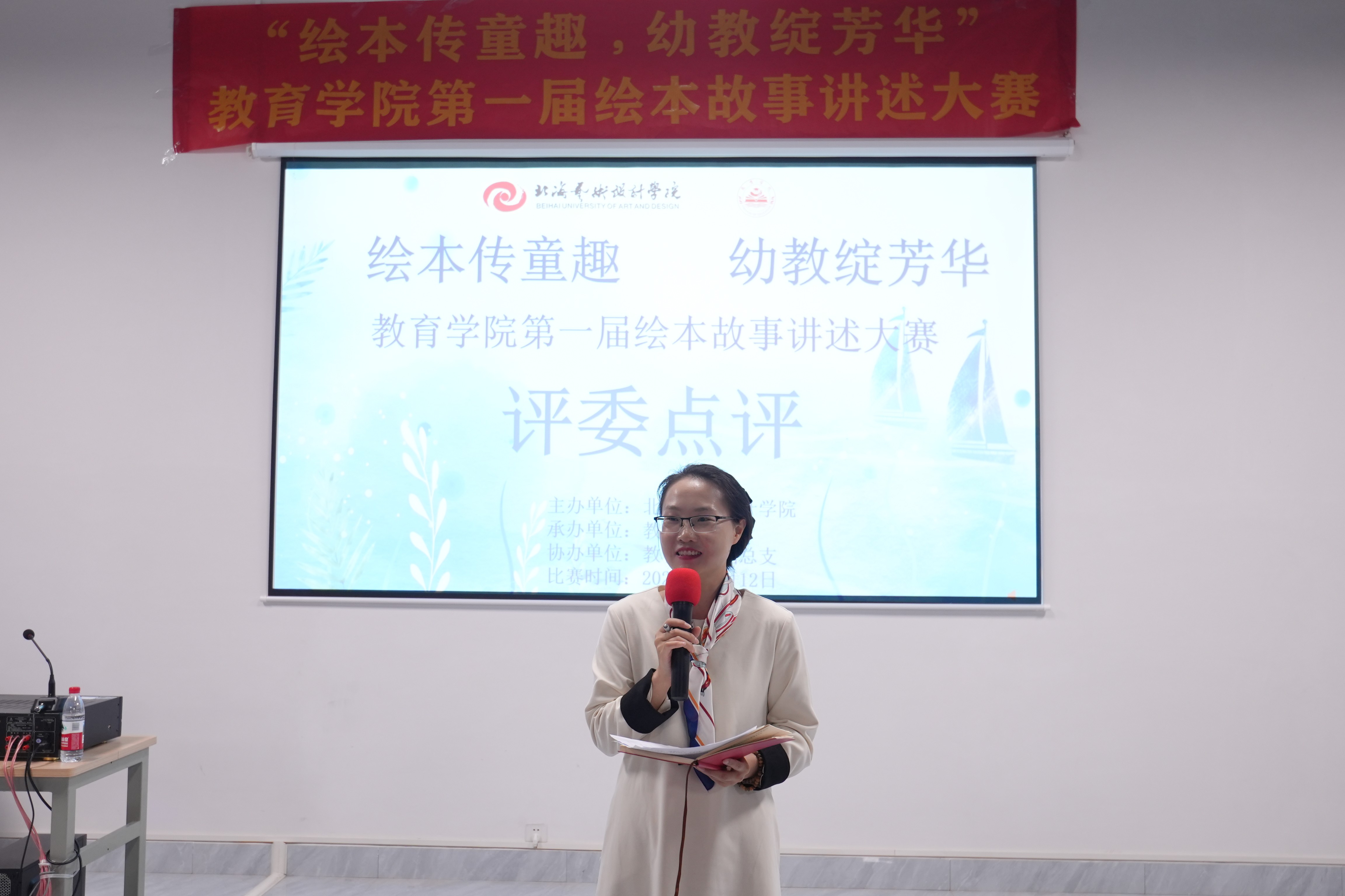赛后,教育学院副院长蒙剑英作现场点评。她首先肯定了全体选手的用心准备与精彩表现,同时从专业角度给出建议:幼儿是通过感官和动作来理解世界的,讲故事的人需要通过语调的起伏、节奏的变换、适时的停顿以及生动的表情、惟妙惟肖的道具营造故事的氛围,传递声音里的温度和节奏里的情绪。中肯的点评让在场学生受益匪浅。