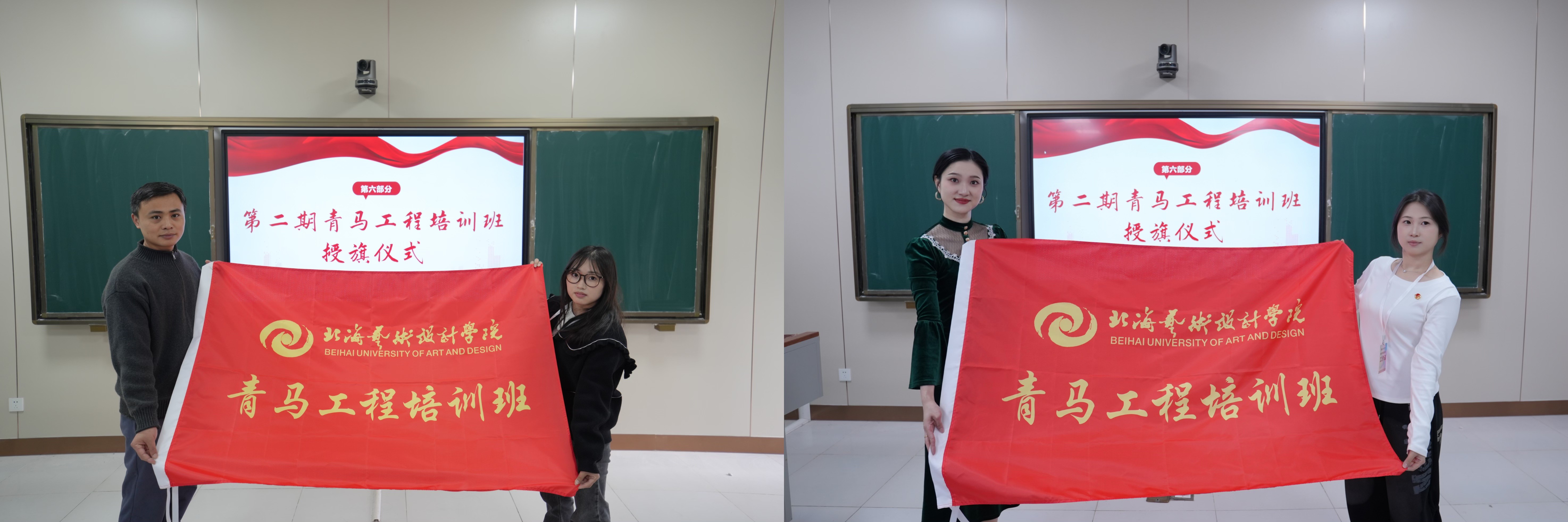 仪式最后,现场举行第二期“青马工程”培训班授旗仪式。 哲学学院授旗仪式 教育学院授旗仪式