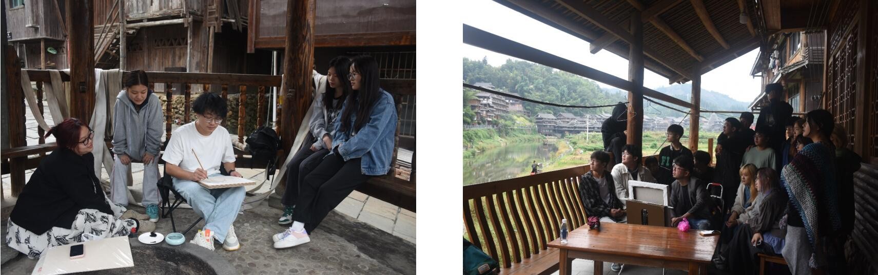 2023年109日,美术学院绘画专业2022级学生前往独具民族特色的柳州三江开展采风写生实践活动。本次写生目的在于通过近距离感受三江侗族自治县程阳八寨的自然风光和风土人情,深入了解艺术源于生活而又高于生活的含义,转变学生绘画思维,从而创造出更具生命力的作品。