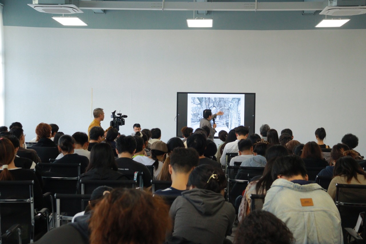 林驹教授以自己的画作为例,通过不同主题、不同风格的画作来讲解针管笔绘画的技巧和要点,首先,我们在绘制一幅画作时应认真考虑构图中的虚实、黑白关系,需要先从多个角度观察自然物像、深度推敲构图,在心里有个大致图像后再进行绘画。此外,在讲解绘画局部细节时,同样需要从多个角度考虑图像的透视关系。最后,林驹教授强调,绘画要做到熟能生巧,勤能补拙,日常要多加练习。