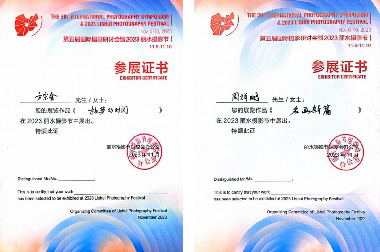 喜报!美术学院摄影专业两名学生入选2023丽水摄影节