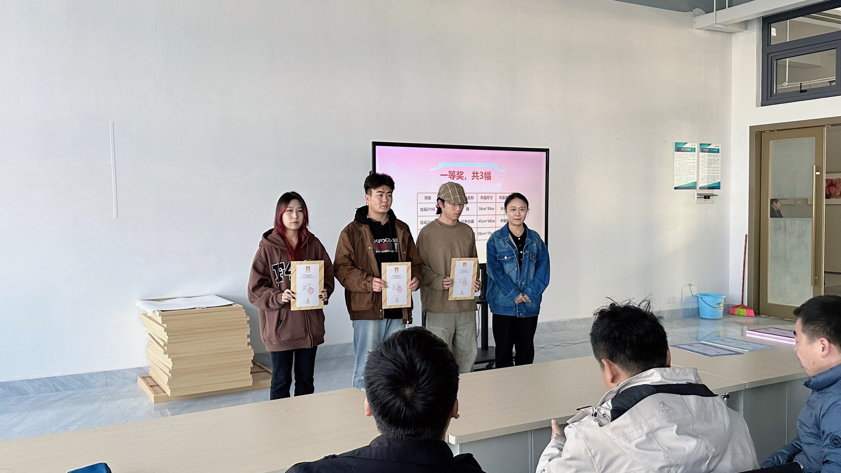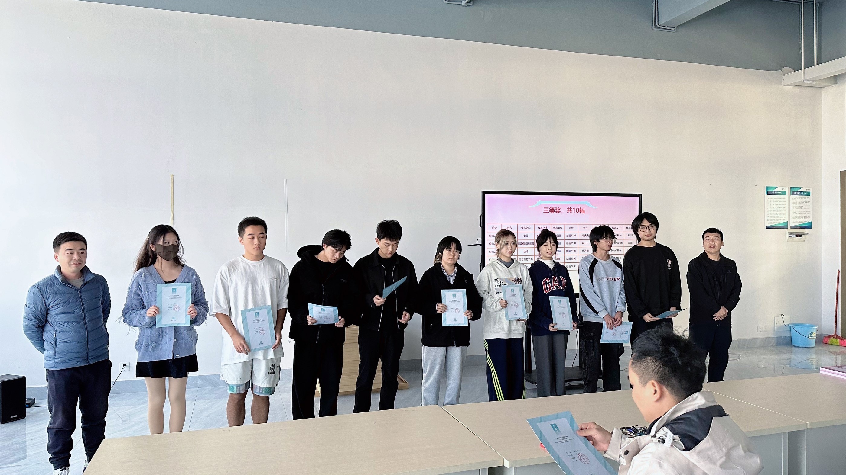 20231227日下午,学院举办了获奖作品的颁奖活动。其中一等奖由美术学院肖玺院长颁发,二等奖由教研室主任刘勇生老师颁发,三等奖由美术学教研室主任陈建江老师和实验室主任袁志伟老师颁发。一等、二等、三等奖项设置了相应的奖励金,意在激发学生对自身专业认同感和良性竞争意识,进而培养学生的自主学习和创作意识。