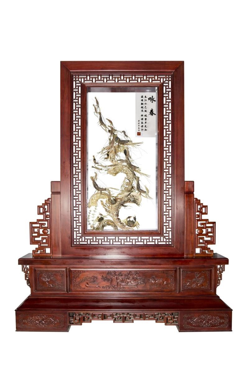 在实践指导方面,白耀华教授带领学生深入角雕创作一线,从选料、设计到雕刻,每一个环节都耐心指导,帮助学生掌握角雕技艺的精髓。他还积极参与指导青年教师,分享自己多年的创作经验与艺术理念,提升教师的教学与实践能力,助力学校打造高水平的师资队伍。在他的指导下,许多学生在各类艺术活动与比赛中崭露头角,为学校争得了荣誉,也为合浦角雕技艺的传承培养了新生力量。同时,通过与学校的合作,合浦角雕这一非遗文化在校园内得到广泛传播,丰富了校园文化内涵,促进了传统文化与现代教育的融合。此外,白耀华还获得了众多荣誉称号。201869日,他被评为“中国工艺美术大师”;20201229日,荣获“广西工匠”称号;20218月,荣获广西五一劳动奖章。2021年,他设计、白霆麒和吴兴初制作的角雕《咏春》在第56届全国工艺品交易会仿真植物及配套用品展上荣获“金凤凰”创新产品设计大赛金奖;20235月,他设计的合浦金蝠《九州同庆》荣获2023年“百花杯”评审活动银奖;20245月,作品《祥和九州》在第四届“百鹤杯”工艺美术设计创新大赛中荣获百鹤新锐奖。