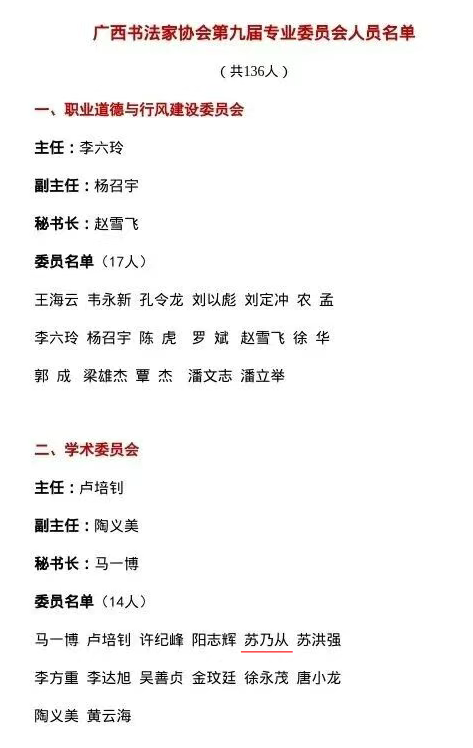 近日,经广西书法家协会第九届主席团审议通过,我院院长黎东明当选广西书法家协会艺术委员会成员,常务副院长苏乃从当选第九届专业委员会委员。