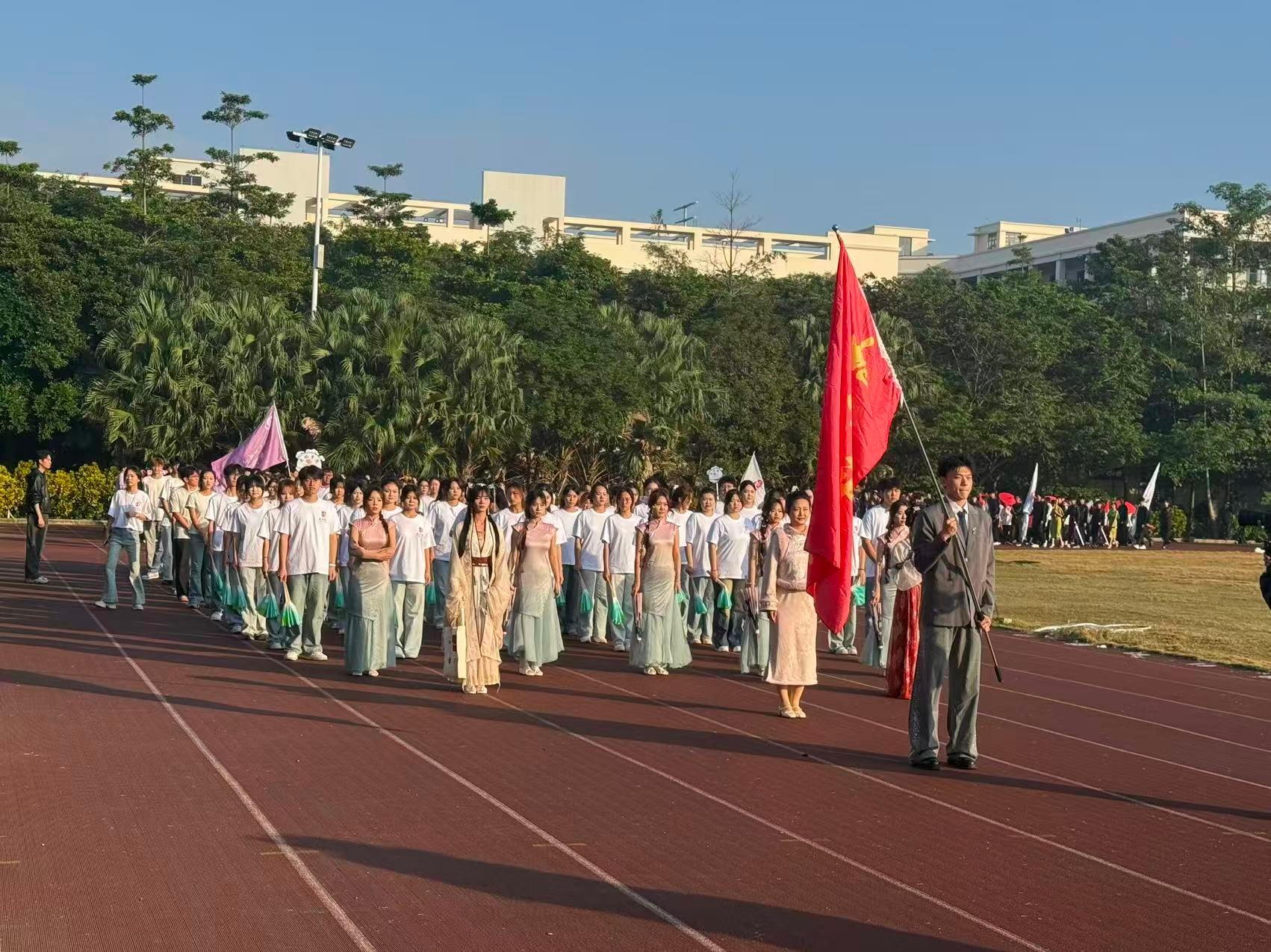 2025年12月19日,北海艺术设计学院第十七届运动会正式开幕。书法学院学工办组织学院师生共同参加开幕式,与全校师生代表一同迎接这场体育盛会。