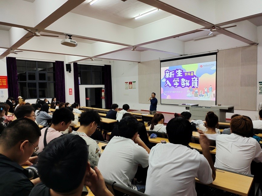 2021年10月9日,美术学院召集全体21级学生在伦理楼107教室展开学风教育讲座,美术学院龚为副院长给21级全体学生进行了内容详尽的新生入学教育演讲。