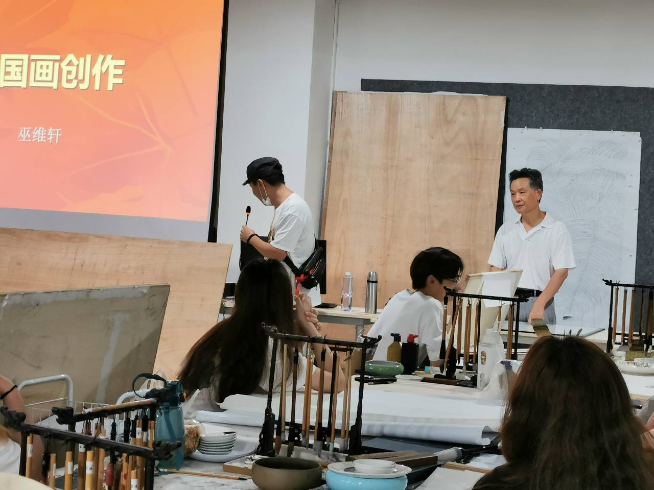 6月中旬,美术学院有幸请到巫维轩教授为2019级绘画专业国画班的《中国画创作》课程进行授课、指导。课上,巫教授对《中国画创作》进行了全面的讲解,内容包括对生活的观察体验与艺术方法、中国画创作的构思与立意、中国画的构图与形式、中国画的造型与技巧等。巫教授从名家作品及自己的创作经验方面,对中国画创作的方法进行了深入浅出的讲解。巫教授细心地为同学们答疑解惑,使同学们对中国画创作有了更深的认识,并付诸于自己的创作中,效果显著。