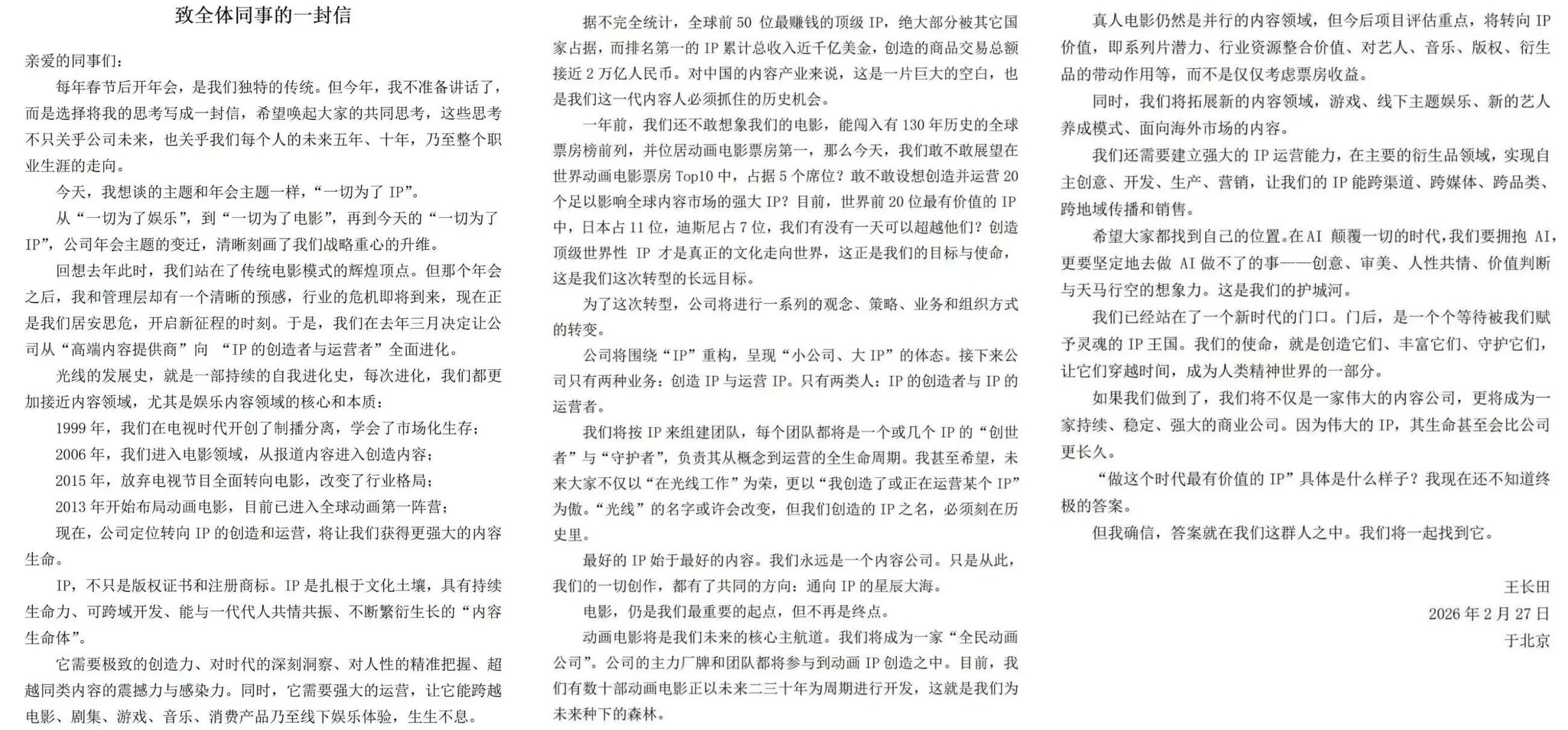 在开春喧嚣落幕的余温里,在大多数影视公司还忙着计算票房、复盘得失,正乱成一锅粥的时候,光线传媒已然默默开始对未来进行布局。