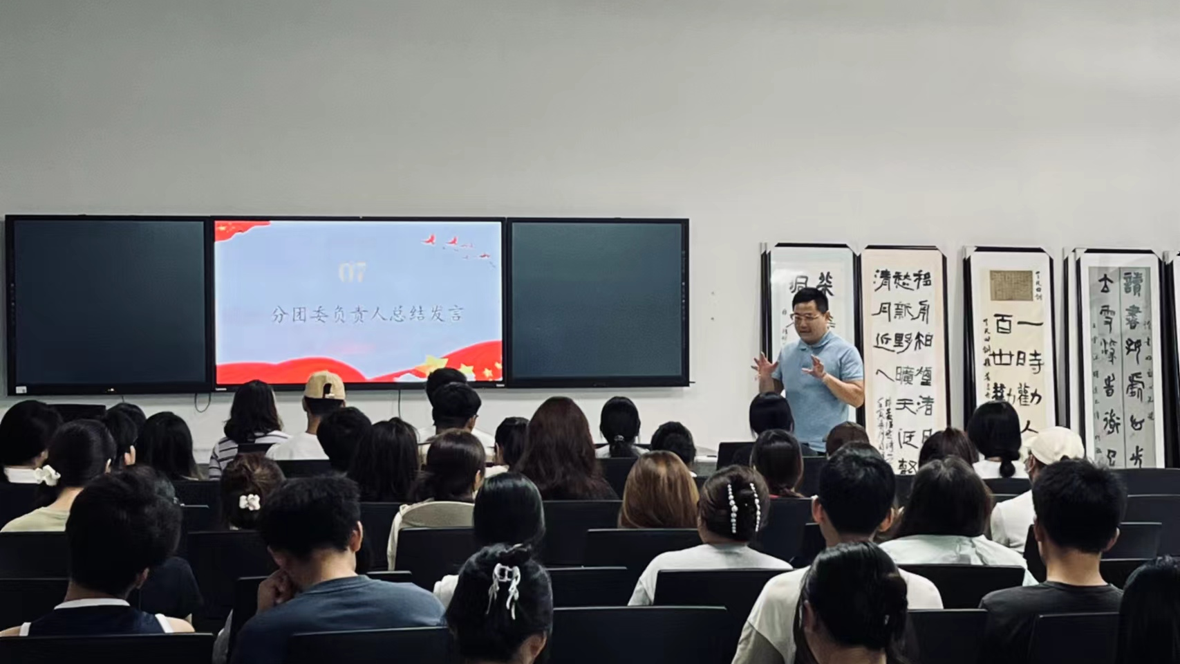 北海艺术设计学院书法学院分团委的成立,标志着北艺的书法学子们将拥有一个更加专业、高效的服务平台,此次大会的召开是一次精神的传递与使命的接力。(胡媛媛 摄)