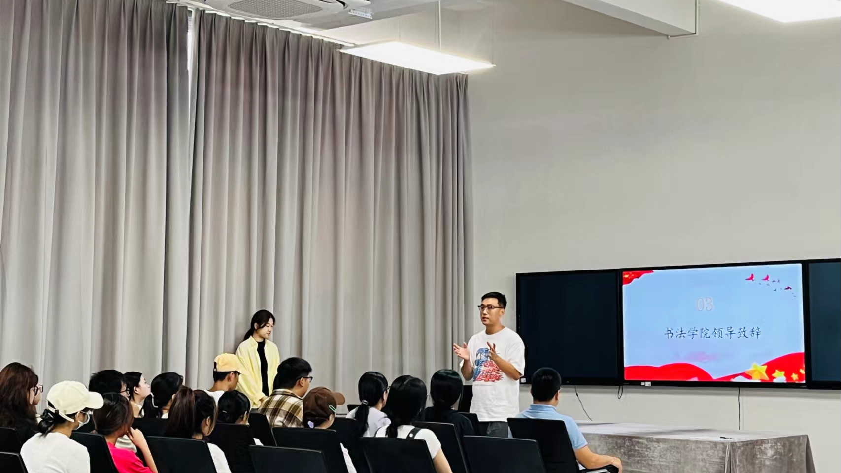 2024年9月29日,为了进一步深化2024级新生对书法学院分团委的全面认识,帮助书法学院分团委开启新征程,于南校区艺德楼书法学教研室举行书法学院分团委成立暨动员大会。党支部副书记、学工办副主任左云飞,书法学院学工办主任、书法学院分团委书记李家琪书法学院分团委负责人石建玲出席会议。