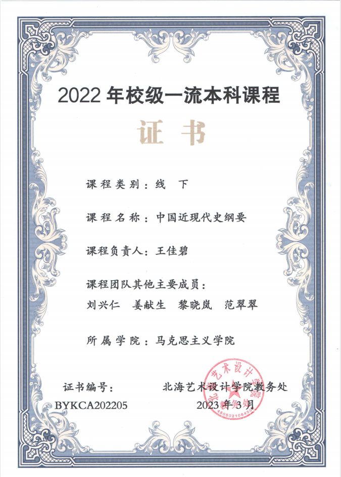 “中国近现代史纲要”被认定为2022年校级一流本科课程
