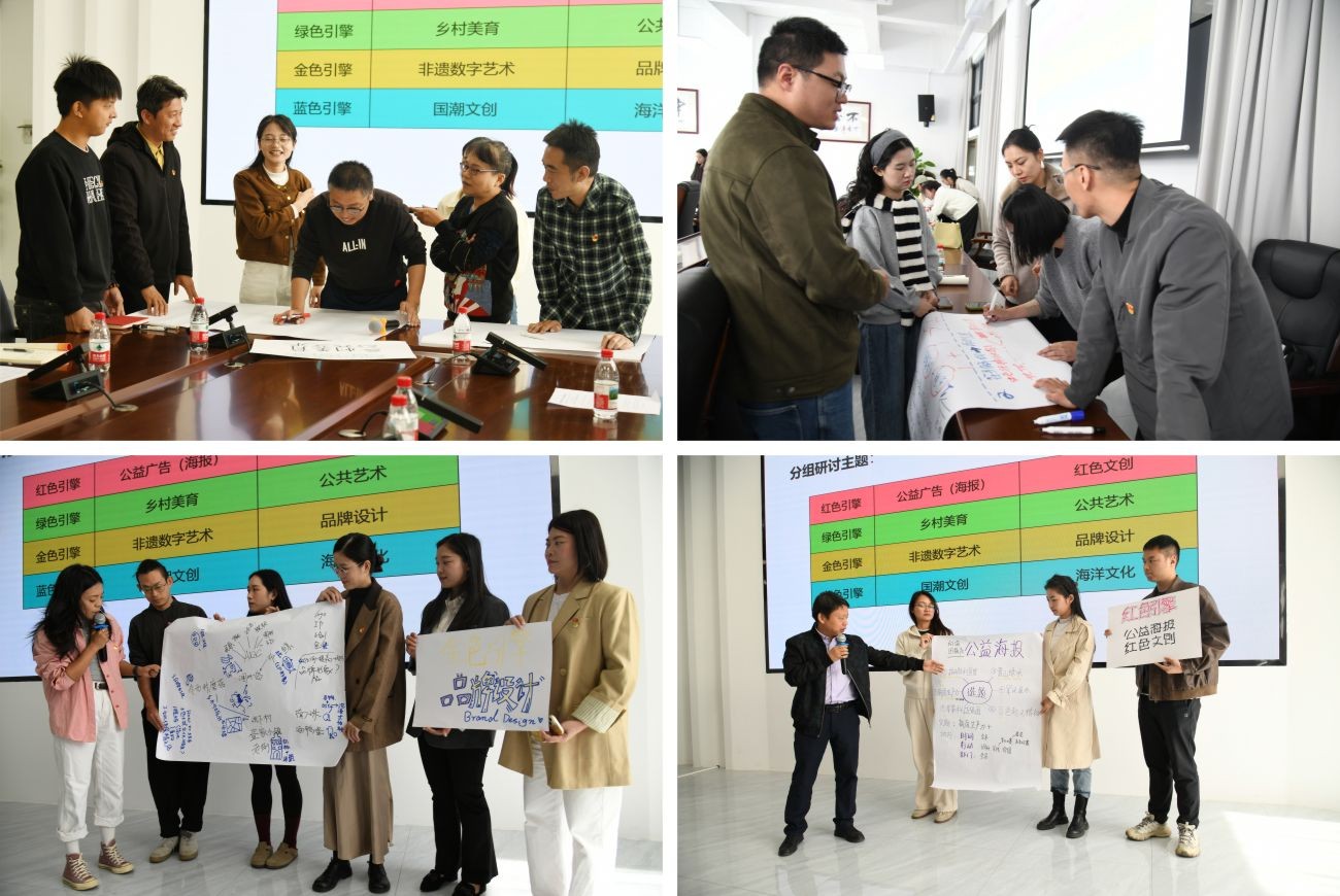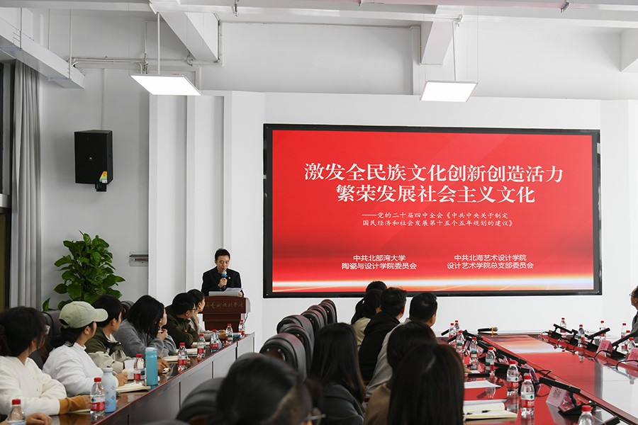 接下来学院党总支陶瓷与设计学院党委联合开展“学习贯彻党的二十届四中全会精神”专题读书班,学院党总支书记黄锦和陶瓷与设计学院党委书记古雅峰分别作领学,大家紧紧围绕党的二十届四中全会作出“激发全民族文化创新创造活力,繁荣发展社会主义文化”重大部署,采取“行动学习”理念,将学习成果凝练成可落地的方案和具体项目并进行交流分享。