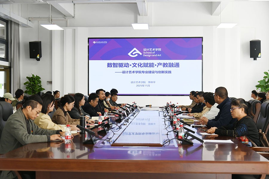 座谈会上,双方围绕党建引领、专业建设、人才培养等议题展开分享交流。北海艺术设计学院设计艺术学院院长李林平对北部湾大学陶瓷与设计学院一行的到访表示热烈欢迎,并介绍了设计艺术学院的整体情况。他提到,学院创办至今通过十余年的努力,构建出“数智驱动·文化赋能·产教融通”的专业建设与创新实践模式,搭建了“馆、校、企”三方协同育人平台,打造了“展、产、销”一体化的文化创意实践教学路径。李林平院长表示,期待以此次“共建共融促发展”的交流共建活动为契机,与北部湾大学陶瓷与设计学院在教学改革、科研合作、师生互访等方面达成深度共识,共同推动设计教育教学工作高质量发展。周晓峰院长对设计艺术学院细致安排和经验分享表示感谢,也系统地介绍了陶瓷与设计学院的整体情况。他指出,陶瓷与设计学院始终秉承立德树人根本任务,在党建引领下,围绕学校区域性,海洋性,国际性办学特色,将地方特色元素融入学科建设和人才培养中,坚持“产学研用深度融合”,推动学术研究扎根于实践土壤,服务地方特色、助力钦州坭兴陶行业发展。面向未来,陶瓷与设计学院将继续深化教育教学改革,提升社会服务水平,在高质量发展的道路上稳步前行。