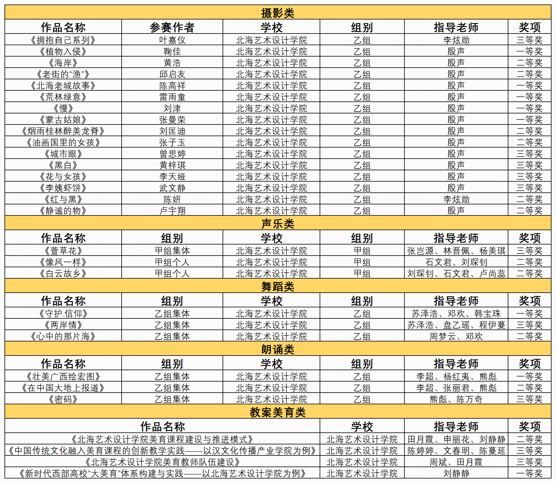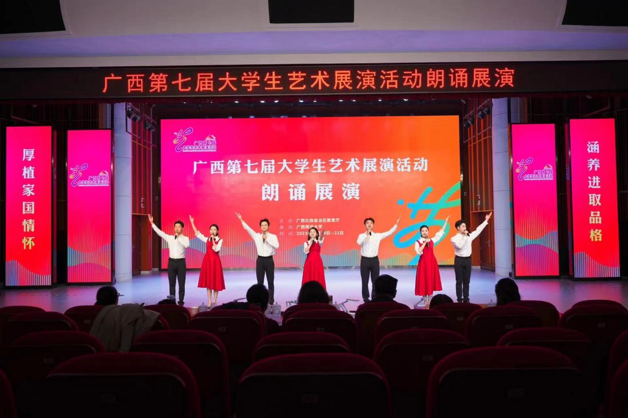 近日,在广西壮族自治区教育厅主办的第七届大学生艺术展演活动中,我校师生凭借出色的表现,荣获了29个奖项,其中包括“一等奖8项、二等奖11项和三等奖10项”。