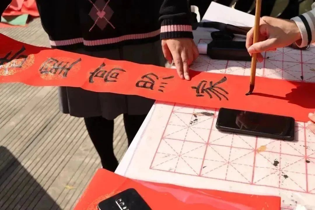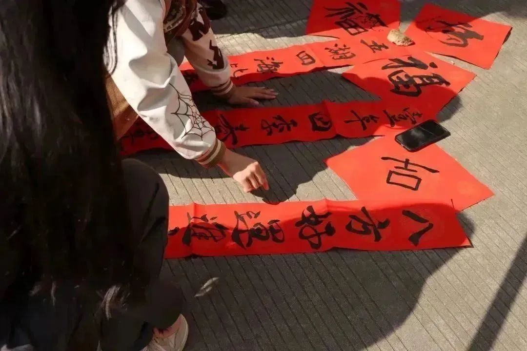 在送春联活动中可以让同学们借助春联,去感受中国传统文化的魅力。在不同的春联祝福语中,不仅仅承载着对同学老师的新年祝福,还承载着中国人骨子里温良的品性。让同学们去感受春联里所蕴含的语言魅力,感知中国文化的博大精深。 岁岁常欢愉,年年皆胜意,祝大家在新的一年里平安健康,从此凛冬散尽,星河长明。(谌雨丹、杨夏爽/摄)