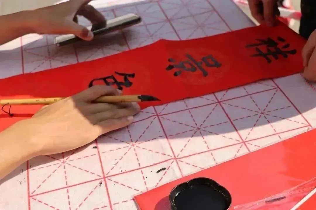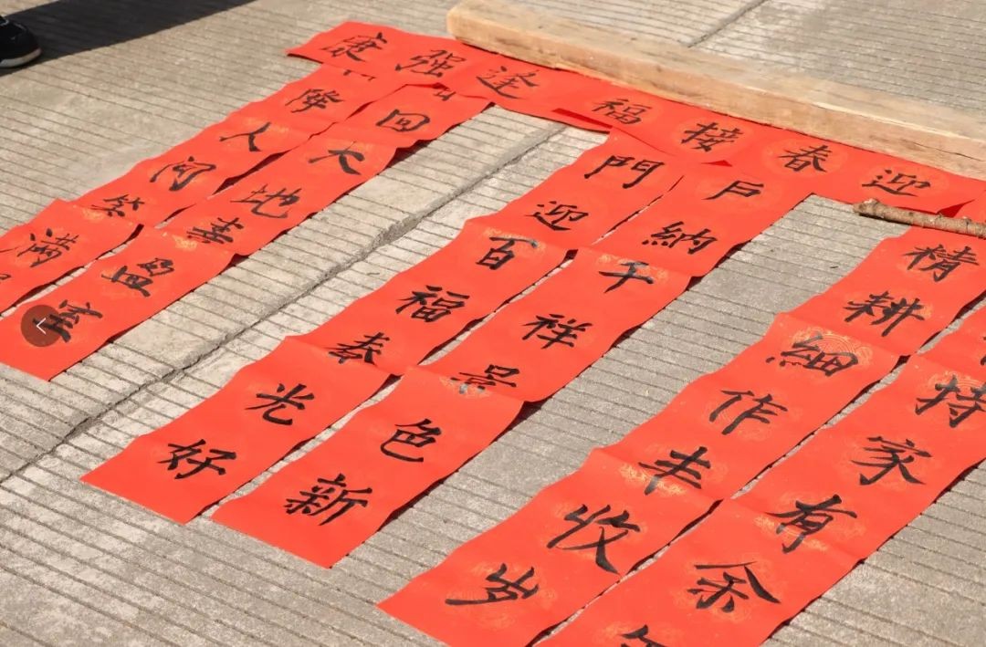 大小书法家们挥舞着手中蘸满清香浓墨的毛笔,将心中的愿景注入笔墨里,映在工整的对联上,一副副“定制”春联书写着浓浓的年味,送上了对大家的新春祝福。