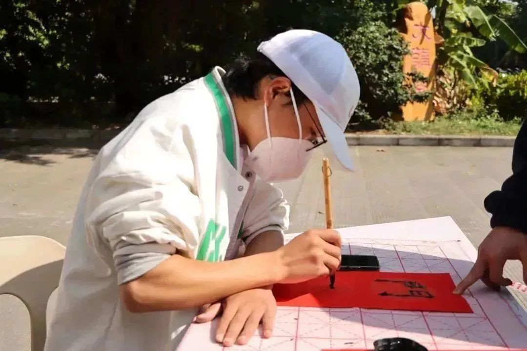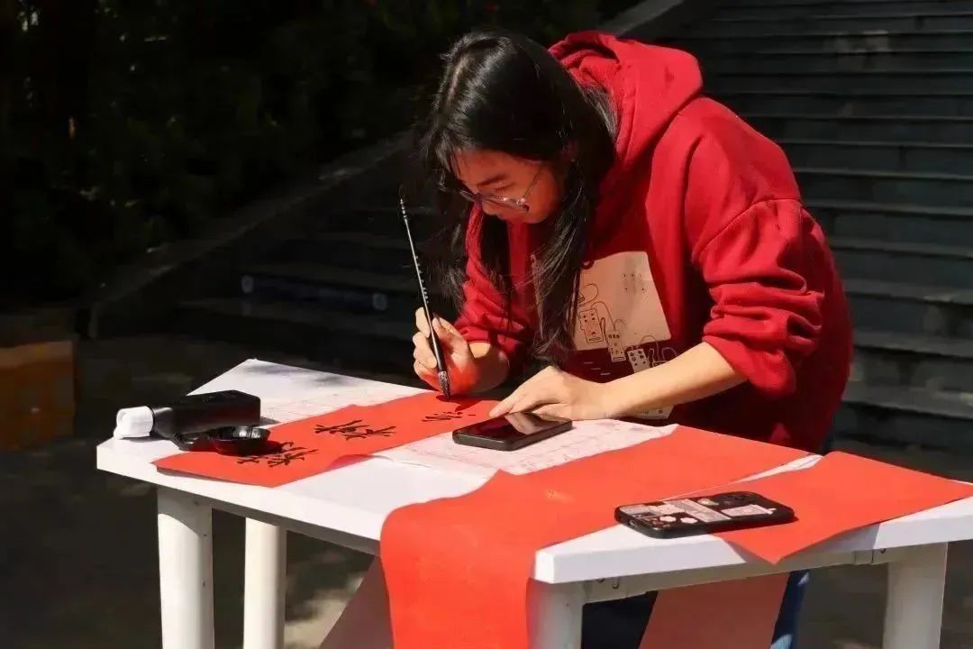 本次活动由志愿者现场书写春联,校团委新媒体宣传部的干部在现场维持秩序并辅助写春联的同学,为书写春联的同学做后勤工作。