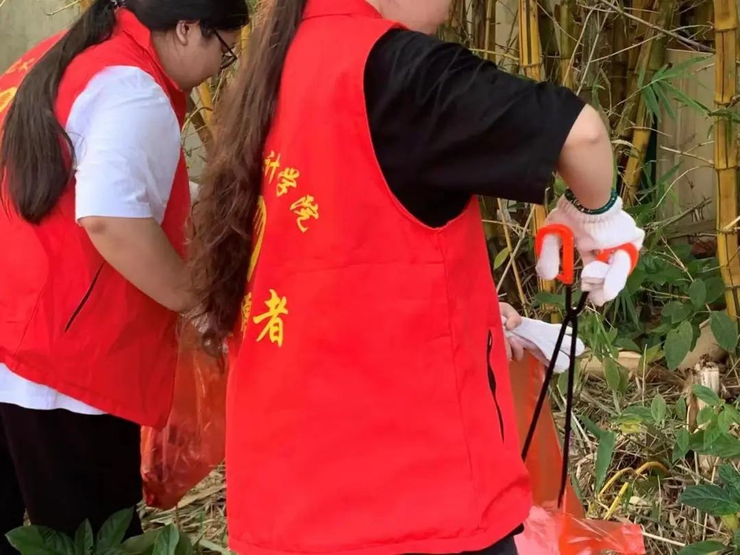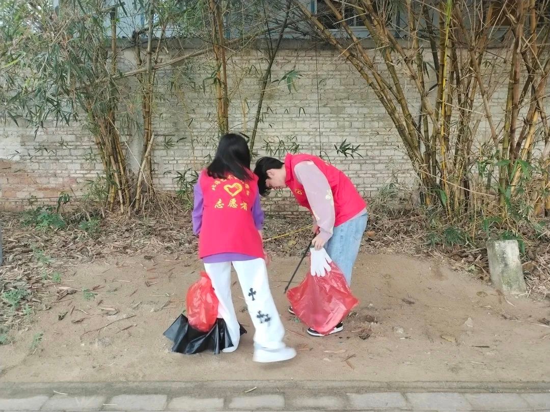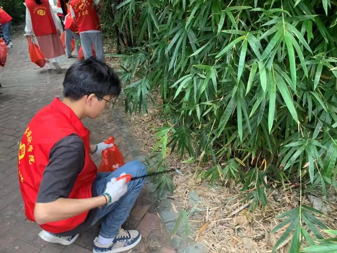 志愿者整装完毕,手持垃圾袋、钳子等清洁用具在学校周边开始行动,对绿化带、人行道等地方进行着重清理,用实际行动让街道恢复了原本干净整洁的样子。