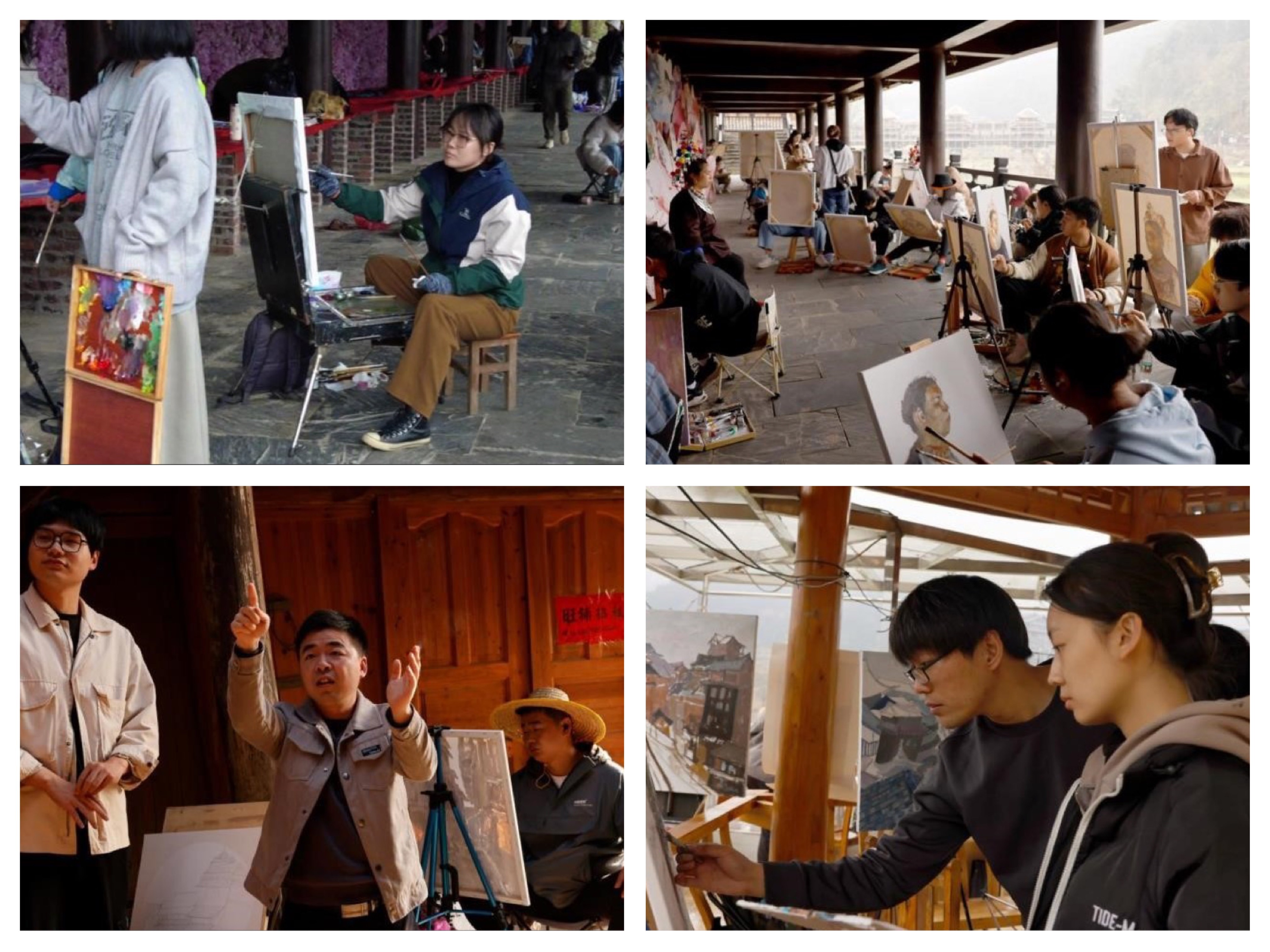 3月3日,美术学院教师带领绘画专业学生前往独具民族特色的柳州三江开展采风写生实践活动。近距离感受三江程阳的自然风光和风土人情,充分体会艺术来源于生活又高于生活的含义,明确现实是艺术的根源,艺术家应当师法自然,引导学生深入体验生活,转变绘画思维,从而创造出具有更高生命力的作品。